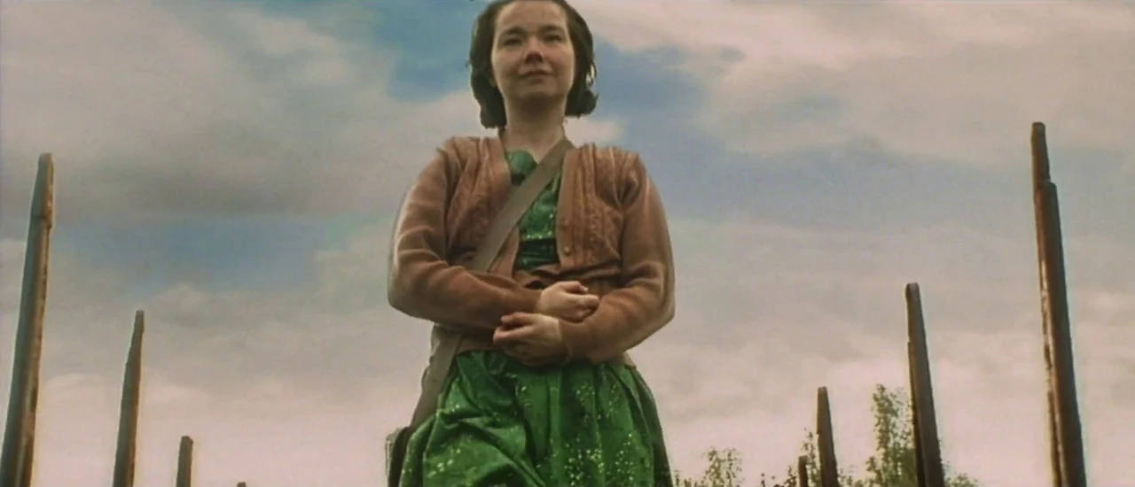 <어둠 속의 댄서> 속에서 등장하는 모든 뮤지컬 장면은 셀마가 자신의 끔찍한 현실을 도피하기 위해 만든 환상들이다. 핸드헬드 기법으로 불안정하고 위태로운 셀마의 모습들을 비추던 현실과는 다르게, 이 환상 속에서 셀마는 누구보다 안정적이고 독특한 음색으로 자신의 현실이 아닌, 또 다른 자기 자신을 노래한다. 이러한 현실과 환상 사이 절대로 좁혀질 수 간극은 기묘하게도 아름다움을 자아낸다. 그것은 어떤 완성되고 매끄러운 것으로부터 자아내는 아름다움이 아닌, 불균질적이고 추한 것으로부터 정제되지 않은 날 것의 감정에서 느끼는 아름다움이다. 그 감정은 모든 이들이 겪은 것은 아니지만, 인간의 가장 원초적인 감정으로 원색적으로 빛나는 화면, 독특한 음악(특히 뷔욕의 음악은 이 영화를 완성시키는 가장 중요한 요소 중 하나이다.)과 어우러져 심미적인 아름다움을 완성시킨다. <어둠 속의 댄서>는 비극을 통해 희망을 이야기하는 영화가 아니며, 오히려 한 인물을 파국을 향해 깊게 내몰아가며 극단적인 끝에 내몰렸을 때 피어오르는 비극의 아름다움을 꺼내어 보이는 영화이다. 그렇기에 이 영화를 봤을 때 모든 이들은 불편할 수밖에 없을 것이다.