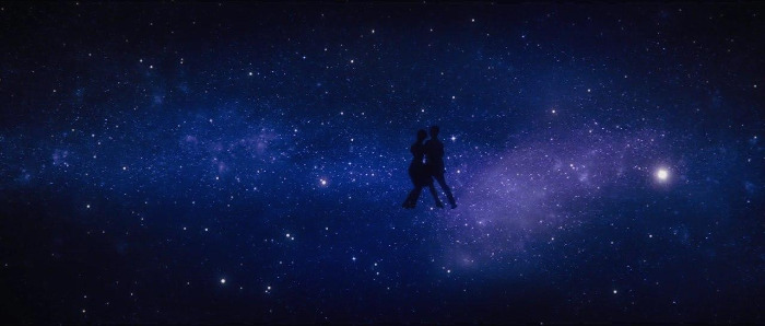 사랑은 이처럼 자신과 사랑에 빠진 대상 외에는 아무것도 보이지 않게 만든다. 하나의 감정에 온전하게 사로잡혀 그들 외에는 세계를 잊어버리게 만든다. 어떤 단어를 이 사랑의 순간에 담아도 모자라겠지만, 순수한 열정만큼은 이 사랑을 표현하는 데 있어서 꼭 필요한 것일지도 모른다. <라라랜드>에서 이러한 장면이 가장 잘 드러나는 순간이 천문대에서 두 사람이 데이트를 하는 장면이다. <이유 없는 반항>의 실제 촬영지인 그리피스 천문대로 몰래 들어가는 두 사람. 천장에 별이 가득한 가운데 키스를 하려던 두 사람의 손수건이 갑자기 하늘로 떠오르고 두 사람은 자신들만의 환상적인 세계로 날아간다. 언덕 위에서 춤추던 장면이 사랑의 첫 시작이었다면, 마치 노래 가사처럼 머나먼 우주로 날아가는 두 사람의 모습은 사랑에 완전히 빠진 모습이다. 그 세계야말로 아무것도 두려울 것이 없고 아무것도 무섭지 않은 오직 둘만이 구축해낸 완전한 세계. 사랑의 황홀함은 서로를 취해있게 만들며 그들이 사는 세계의 풍경조차 바꿔놓는다. 샤갈의 그림도 모든 그림의 법칙을 뛰어넘어 샤갈과 벨라 만의 온전한 세계를 담아낸다. 주변이 온통 기쁨과 행복의 노란색으로 가득 차 있고 여자와 남자의 기본적인 역할을 벗어난 그들만의 자유로운 세계. 사랑을 하는 이들에게 있어 그 세계는 그야말로 그들의 낙원이자 유토피아이다.
