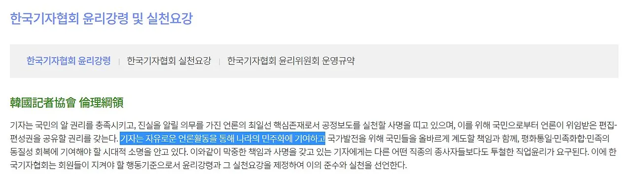 저널리즘을 지탱해오고 힘을 실어준 뿌리에는 저널리즘이 민주주의에 기여를 한다는 점이 결정적이었다. 한국기자협회의 윤리강령에도 "자유로운 언론활동을 통해 나라의 민주화에 기여"한다는 표현이 있다. 정치학에서 쓰는 용어를 빌리자면 민주주의의 공고화에 저널리즘이 중요한 역할을 해왔다는 것이다.