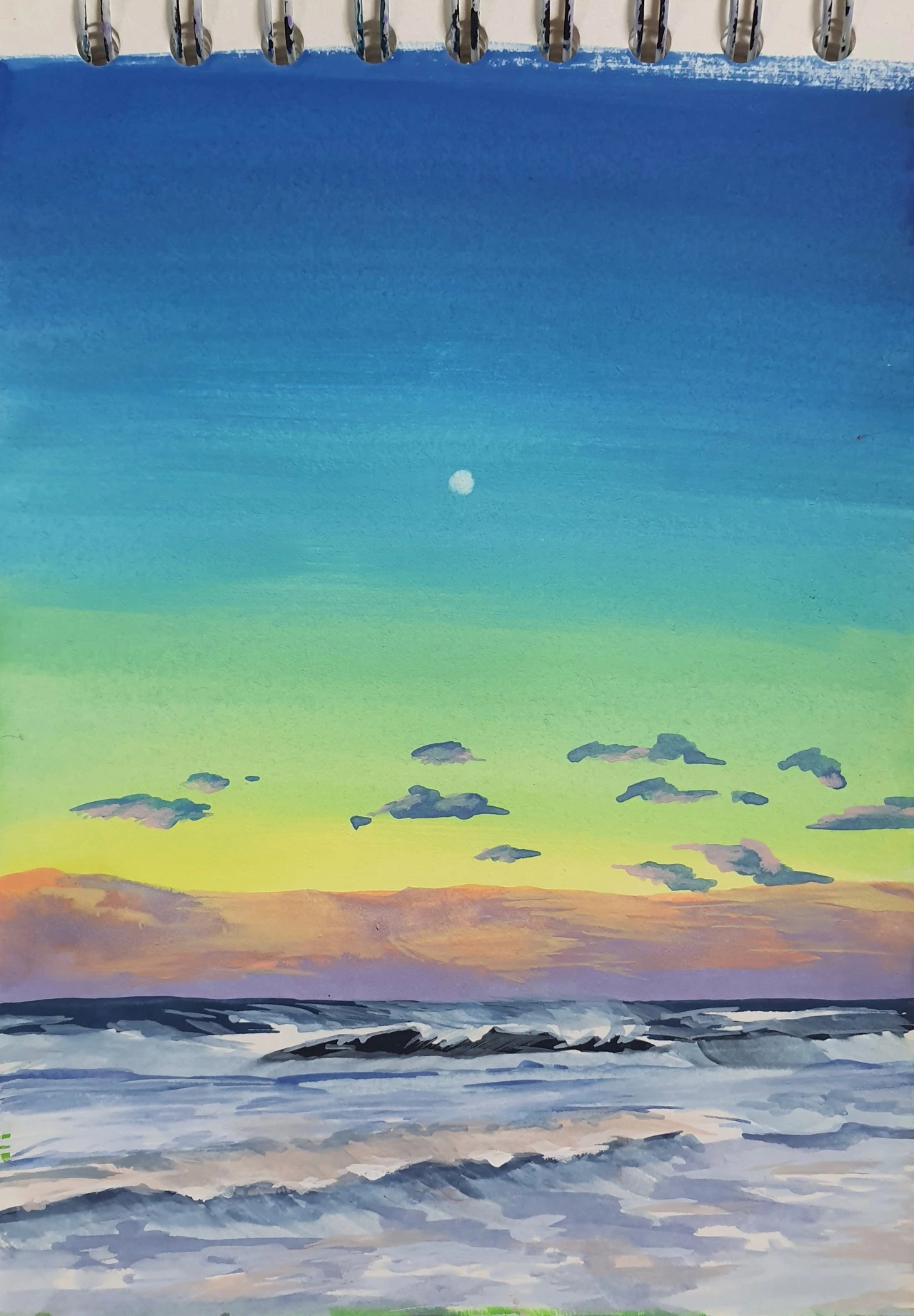 진짜 보이는 대로 묘사하려고 노력했는데 오? 생각보다 바다스러운 그림이 나왔다.