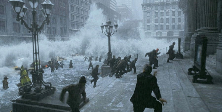 영화 속 자연재난의 모습에서 사람들은 살아남기 위해 건물 속에 들어가 체온을 유지하고, 식량을 조달받으며 약품을 얻기 위해 필사적으로 노력한다. 영화 속의 설정이 너무나 리얼하고 구체적으로 묘사되어 있어 보는 이도 마치 자연재난 속에서 그들과 함께 있는 것 같은 생동감을 준다. 또한, 빙하기의 시대로 접어드는 지구의 모습을 보며- 미국의 할리우드가 삽시간에 허리케인 같은 폭풍에 무너지고, 많은 건물들은 해일이라는 바다의 먹이가 되고, 자유의 여신상은 점차 그 자리를 지킬 수 없게 되는 모습- 그 허망함의 무게가 더욱 크게 느껴진다.