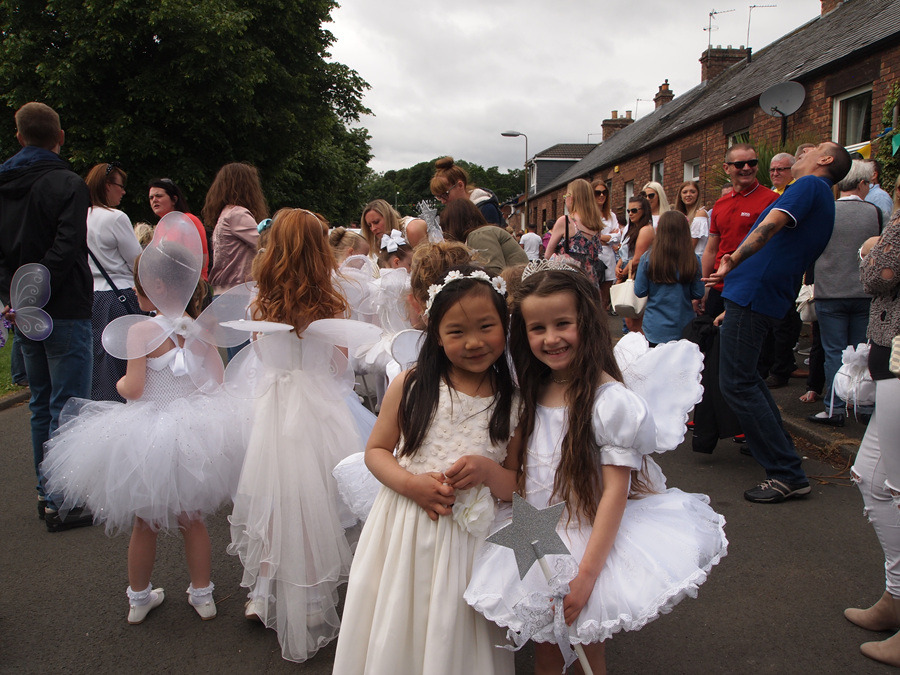 여러 행사 중 초등학생만 참가할 수 있는 어린이 퍼레이드가 있는데 거기에 함께하려면 미리 신청을 해야 했다. 이 마을에 정착하여 맞이하는 첫 번째 마을 축제인데 우리 딸들이 빠질 수야 있나? 한 번 해 보자!라고 의기투합한 후 신청서를 냈다. 큰 딸은 바우어 걸(bower gir)을 작은 딸은 하얀 요정(white fairy)을 배정받았다. 뭘 어떻게 하는 건지 몰랐지만 '하다 보면 알겠지!' 정신으로 두 딸은 마을 축제에 퐁당~ 발을 담갔다.