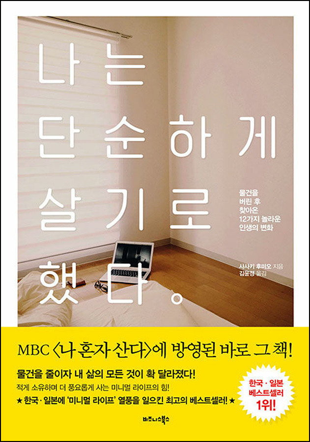 워낙 유명하기도 하고 우리나라 다큐멘터리에도 소개되어서 큰 영향력을 끼쳤더랬죠. 그래서 많은 사람들이 이 책을 미니멀리즘의 교과서처럼 여기기도 하더라고요.