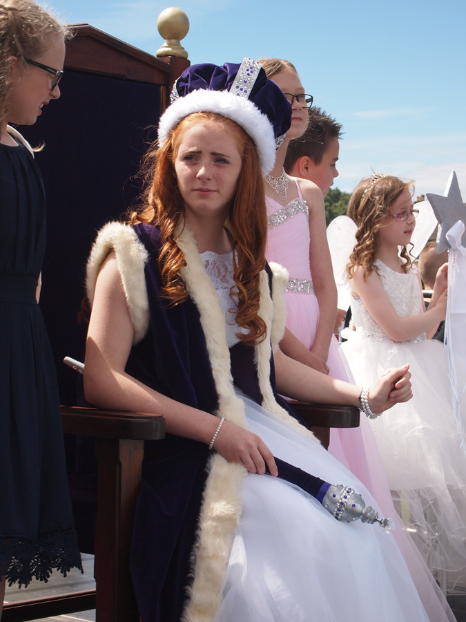 중학생이 된 전년도의 여왕도 다음 여왕에게 왕관과 봉을 건네주기 위해 대관식에 참가했다. 새로운 여왕이 호위를 받으며 입장했다. 사람들은 박수를 쳤고 여기저기서 카메라, 휴대폰으로 사진을 찍었다. 처음에는 그저 신기했다. 여왕이 된 아이들이 예뻤고 우리 딸과 같은 반 남자아이가 여왕 보위대를 맡아 킬트를 입고 나오니 학예회를 보는 것처럼 재밌었다.