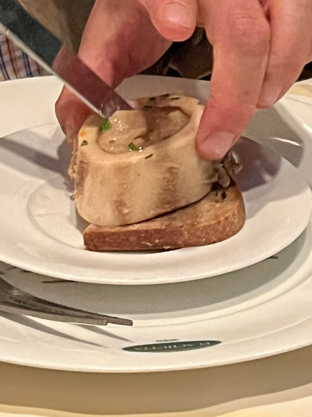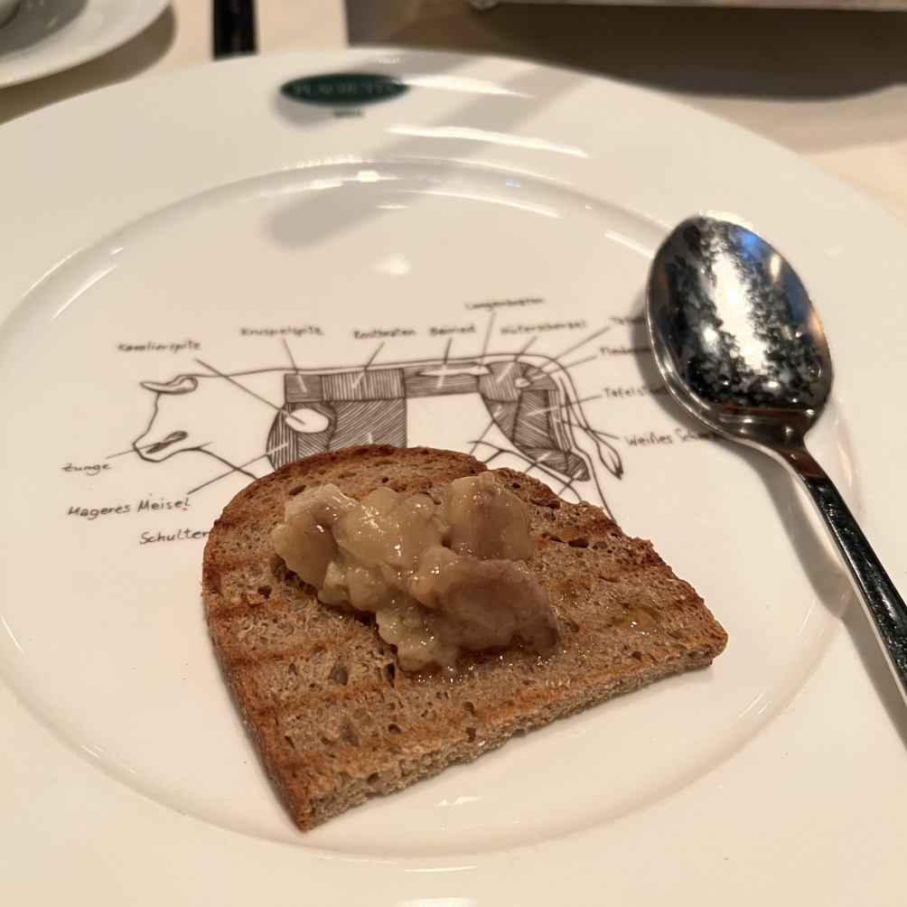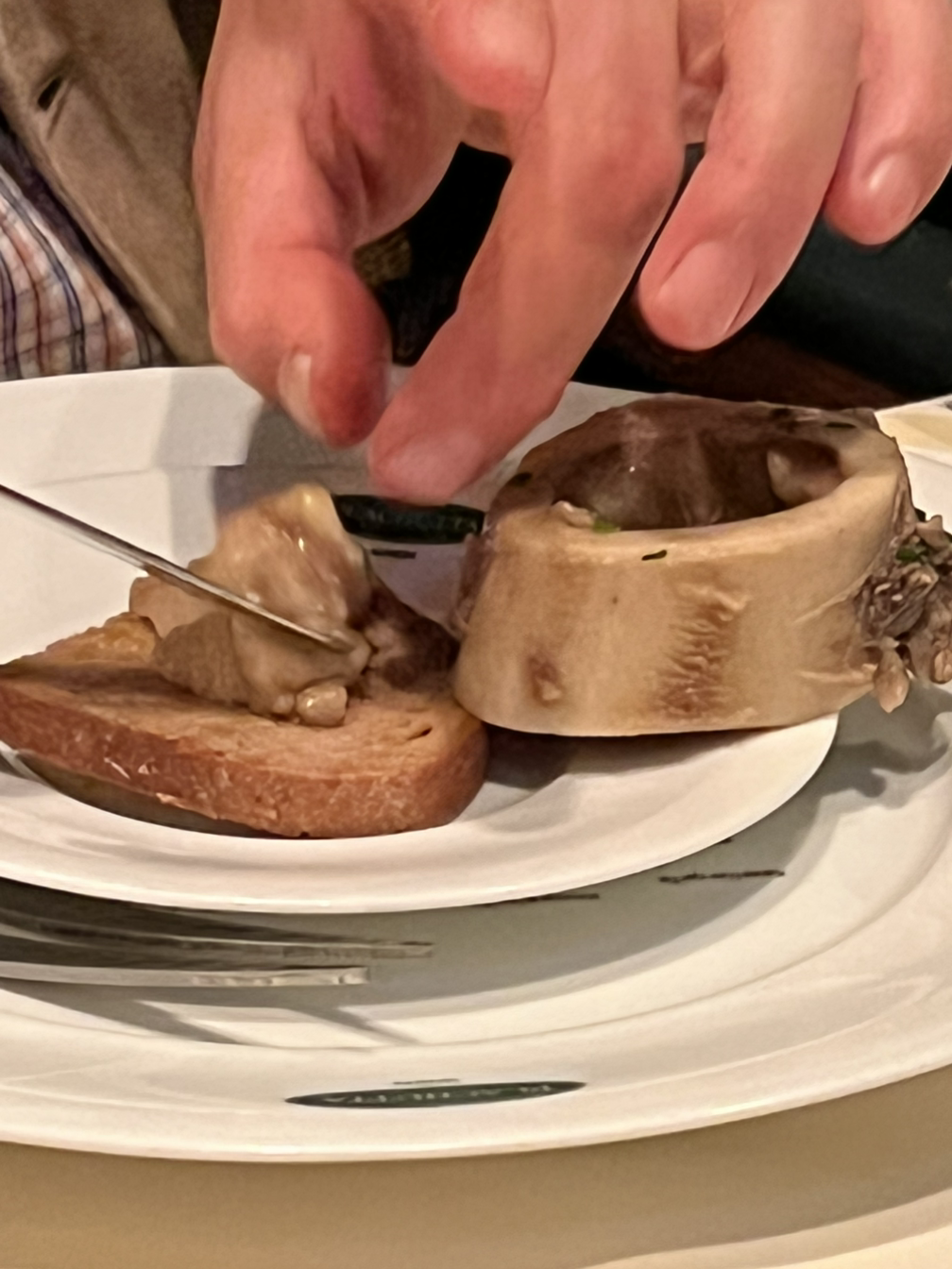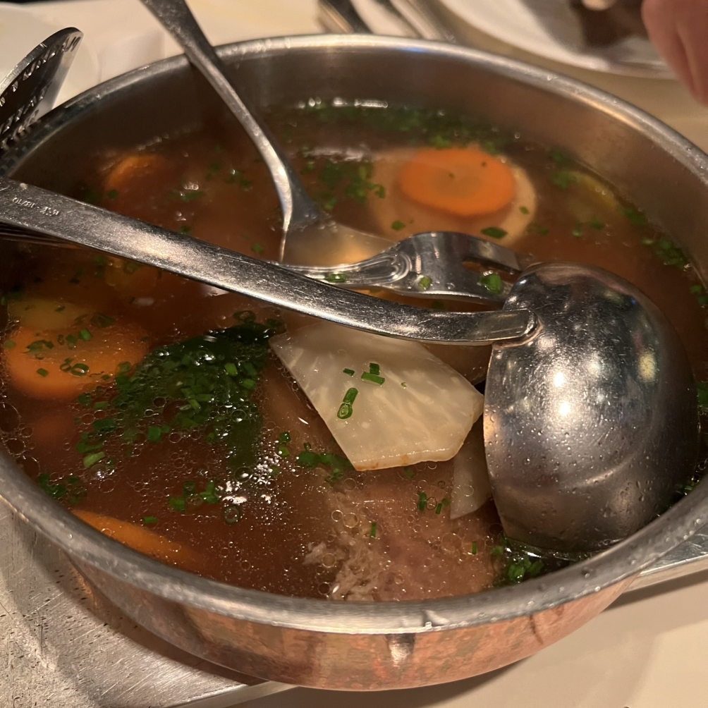 첫째날 저녁, 오스트리아의 대표 음식 '슈니첼'과 '타펠스피츠'라는 도가니 수육 전골(?)을 먹기 위해 오래된 식당을 찾았다. 얇은 돈까스인 슈니첼은 원래 송아지 고기로 만드는 게 찐 오스트리아식이라고 한다. 타펠스피츠는 먹는 방법이 독특했는데 동그란 뼈 안에 있는 골수(?) 같은 걸 눌러서 쏘옥 뺀 다음, 그 연골을 빵에 스프레드처럼 발라서 먼저 먹었다. 물컹한 도가니랑 빵이라니 좀 이상한 조합이라고 생각했지만 고소한 맛이 나서 빵과도 의외로 잘 어울렸다. 수육 고기는 건져서 소스에 찍어 먹고 갈비탕처럼 국물과 야채도 떠서 먹었다. 간이 좀 센 편이라 국물만 먹으니 너무 짜서 야채만 건져 먹었다.