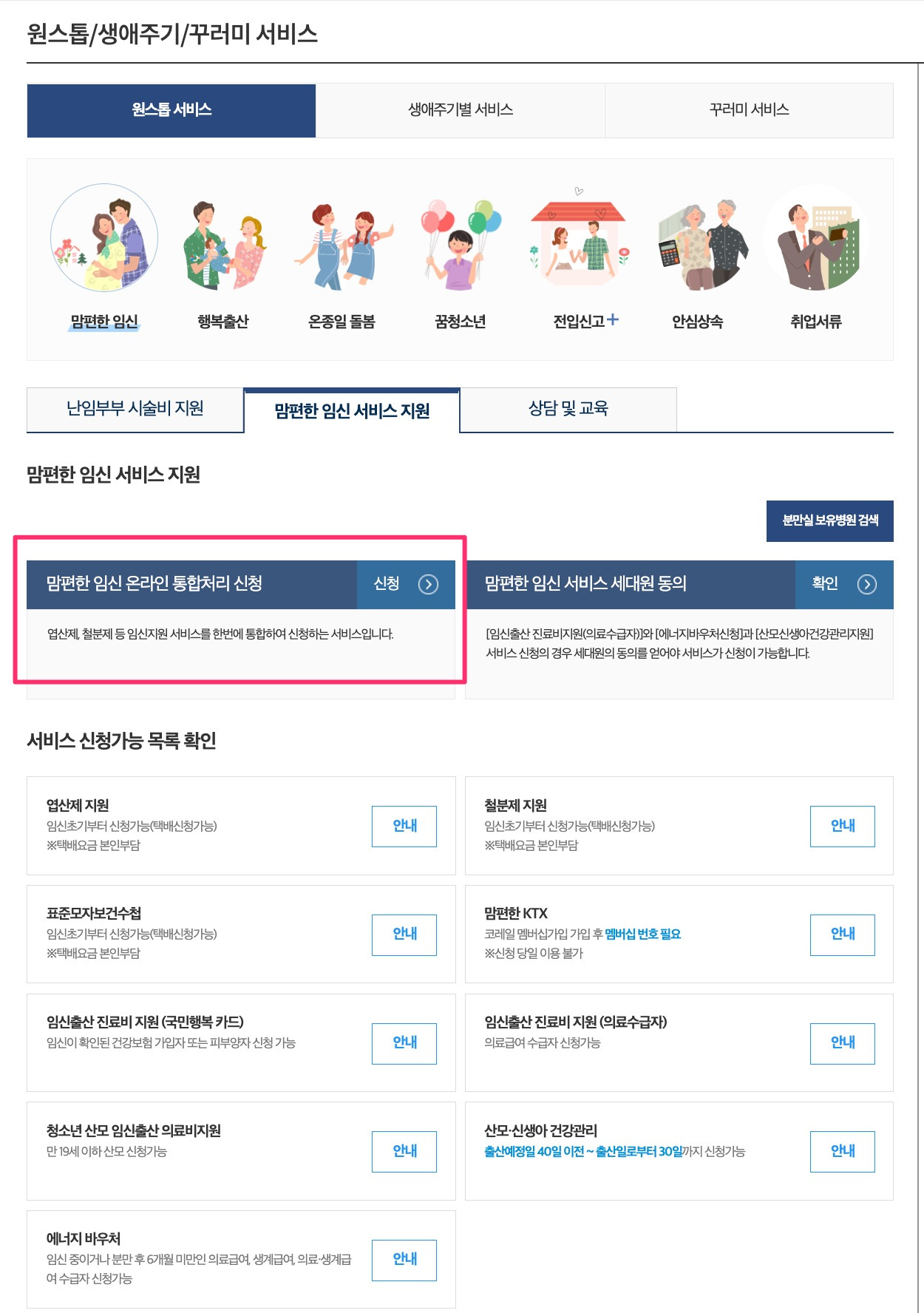 120에 전화해서 물어보니 상담사분도 직접 홈페이지에 들어가서 신청해본 것이 아니라 교육만 받아서 정확히 모르겠다면서 서울시 담당자분의 연락처를 알려주시며 이쪽으로 문의해보라고 하셨다. 시청 담당자분께 여쭤보니 메인 화면에 지자체 서비스 항목이 따로 있는 것이 아니라, '맘편한 임신 온라인 통합처리 신청'을 하면 신청인 정보와 임신관련 정보를 입력한 후 그 다음 페이지의 서비스 신청 단계에서 지자체 서비스가 보일거라고 하셨다.