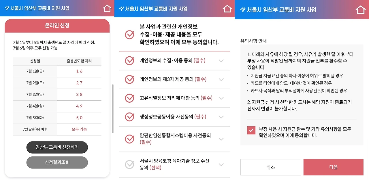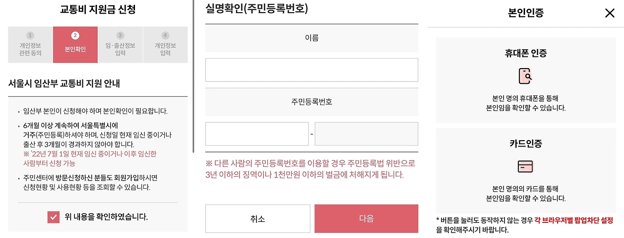 정부24에서 신청을 마치고 이어서 '서울시 임산부 교통비 지원 사업' 사이트로 향했다.
