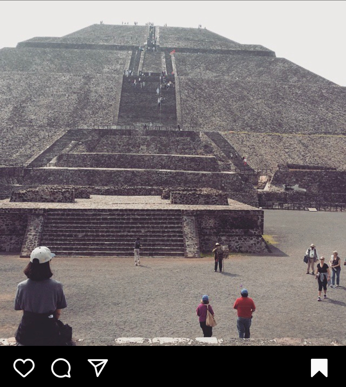 우리 방에 새로 온 조이스는 "갱장히" (이렇게 엽서에 적어둔 걸 발견 - 이 당시에는 갱장하다는 말을 곧잘 썼나 보다) 부지런하다. 덕분에 아침 여섯 시 반에 기상해서 떼오티우아칸으로 출발. 가는 길에 express 편의점에서 비싸지만 싸구려 샌드위치를 사서 갔다. 근데 나중에 알고 보니 다른 친구들은 아침도 간식도 샀더라. 비교적 배고프게 하루를 다녀야 했어서 왜 나는 그 생각을 진작에 못했을까 아쉬웠다.