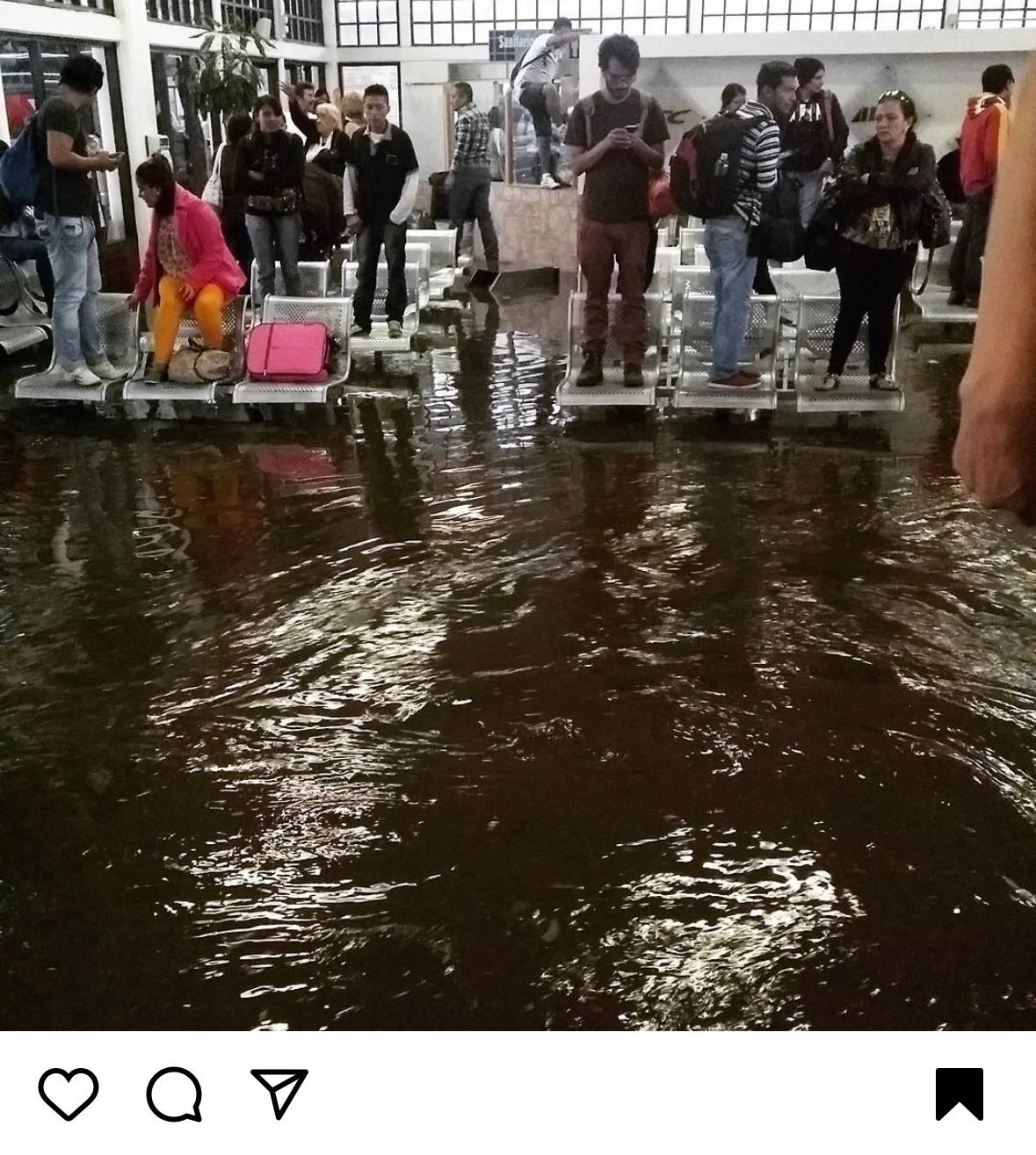 높게 들이친 물 때문에 아무도 움직이지 못하고 있자 소방차들이 왔다. 소방관들은 물을 헤치고 카트 같은 걸 가져다가 사람들을 실어 날랐다. 나는 구석에 있어서 꽤 마지막에 구조(?)되었는데, 소방관에게 업혀 나오는 구조였다. 내 발과 다리는 꽤 젖었지만 내 짐이 더 문제였다. 앞으로 남은 여행 일정이 한참인데, 짐을 못 가지고 이동할 수는 없었다. 안 되는 스페인어로 직원에게 부탁하니 여차저차 소방관이 가져다줬다. 기쁜 마음에 짐을 찾으러 뛰어다가는 크게 미끄러졌다. 무릎이 시큰거렸지만 젖은 레깅스를 걷어올리기엔 정신도 없고 레깅스도 너무 짱짱했다.