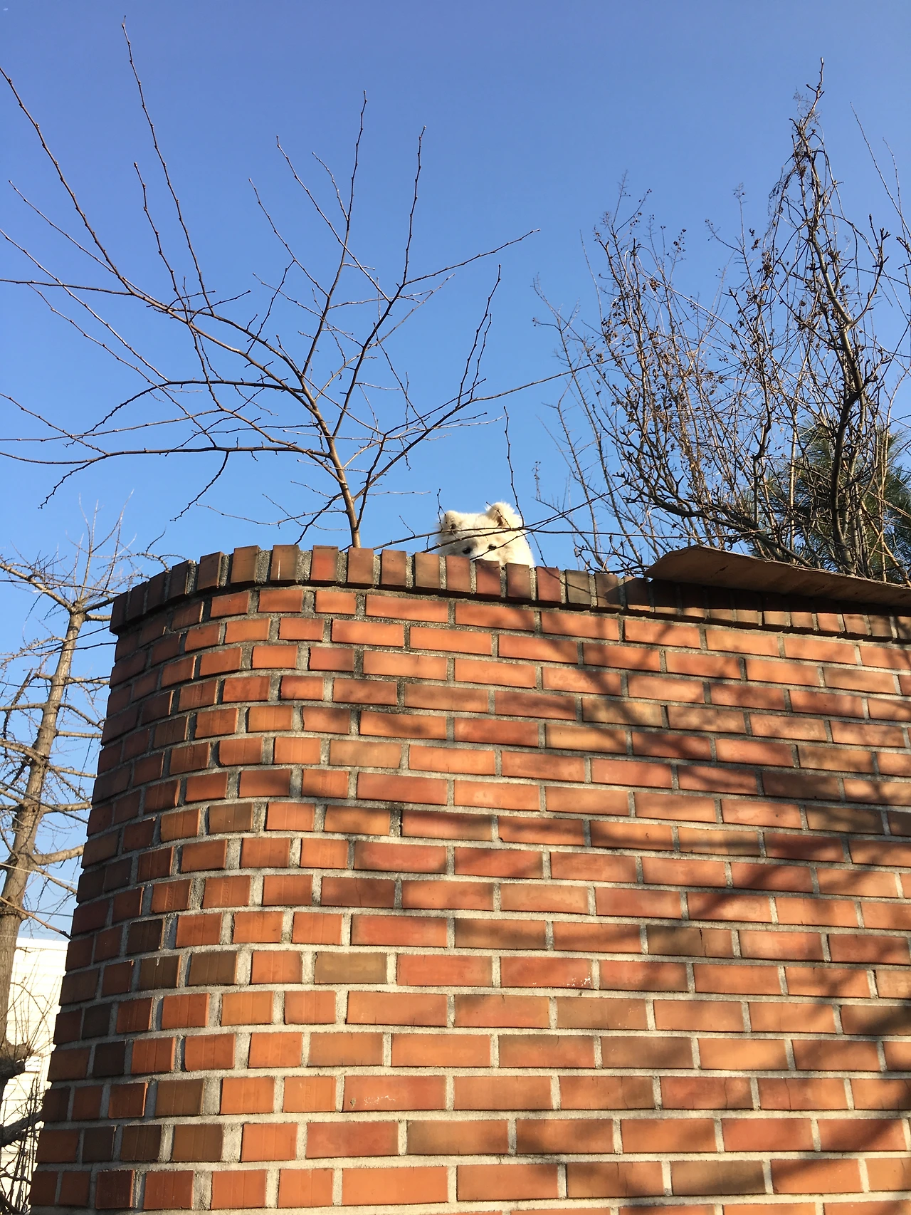 빼꼼이는 그 이후로도 내가 호두와 대동하여 지나갈 때면 아주 높은 빈도로 담장 너머에 등장했다. 가끔은 자기를 무시하고 지나가는 호두가 서운한지 왕왕 큰 소리로 짖기도 했고, 어떨 땐 아주 조용히 지켜보기만도 했다.