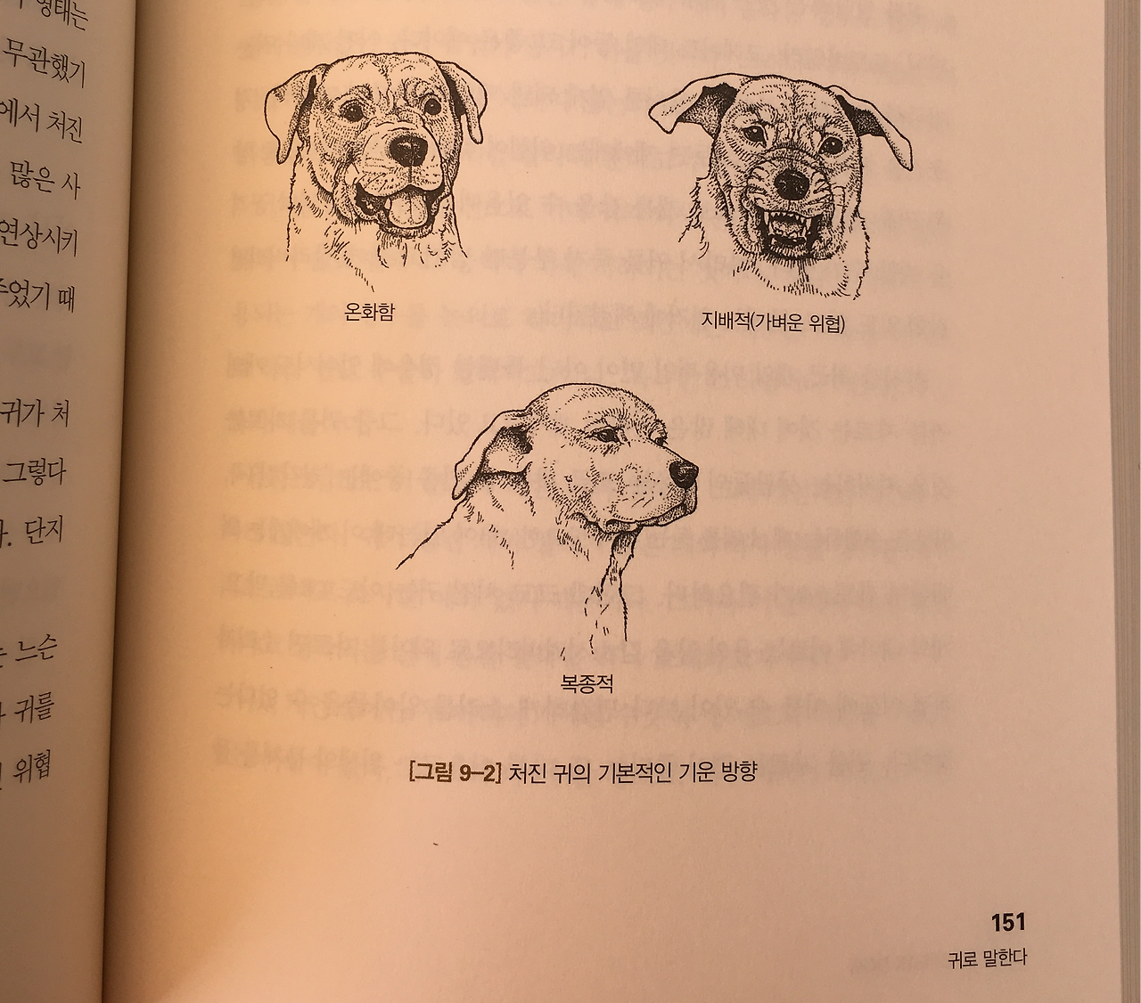 이런 유익한 얘기가 꽤나 많고 그림과 예시가 많이 나와서 반가웠지만, 한편으로 소리와 관련된 내용은 좀 아쉬웠다. 소리에 대한 표현이 '컹컹' '캥캥' 등 의성어로 설명되어 있었는데, 사실 구분하기 좀 어려웠다. 소리는 아무래도 좀 주관적이니까, 텍스트로만 표현하는 데에 한계가 있었겠지 싶다. 이건 내가 좀 더 관찰하고 시간을 보내면서 추측하고 공부해갈 영역이겠지! 이런 아쉬움에도 불구하고 읽으면서 충분히 즐겁고 흥미로웠던 반려견 입문서.