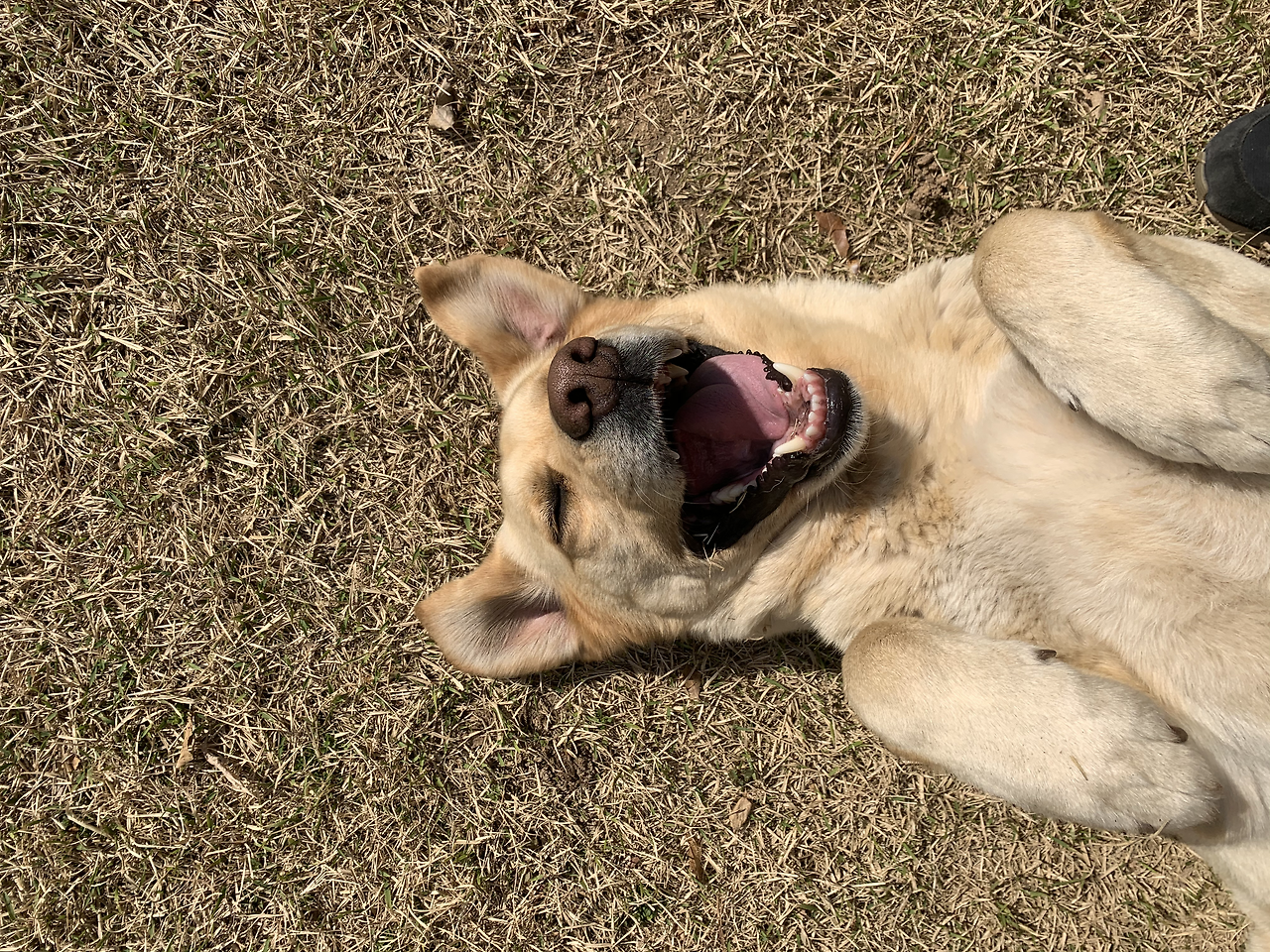 대체 무엇을 위해서, 혹은 무엇 때문에 하는지는 모르겠지만 호두는 집에 돌아오면 마당을 한 바퀴 휘휘 돌고는 바닥에 엎드려 본인 몸에 풀냄새 흙냄새를 잔뜩 묻힌다. 집에 왔다고 세리머니라도 하는 걸까? 가끔은 내 발 위에 드러누워하는 경우도 있다. 내 냄새도 묻히고 싶은 건지, 혹은 나도 하라고 재촉하는 건지 헷갈리면서도 너무나도 귀엽고 사랑스럽다. 그럴 때 내가 바로 집 안으로 들어가 버리면 호두의 흥을 깨기 때문에 그럴 수는 없다. 잠깐 의자에 앉아 비비기 세리머니가 끝나기를 잠깐 기다리면, 호두는 또 특유의 자본주의 눈빛을 띄고 찬찬히 걸어온다. 산책하고 남은 간식들이 있는 걸 다 알고 있으니 어서 내놓으라는 신호다. 간식이 없다고 시치미를 떼면 다시 몸 비비기로 넘어가다가, 주머니에서 뽀시락 거리는 소리는 대체 언제 들었는지 금세 다가와 주둥이로 주머니를 툭툭. 정말 이겨낼 수가 없다.