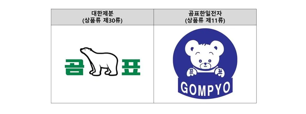 최근 화제의 상표인 대한제분의 '곰표' 상표는 한일전자의 '곰표' 상표와 공존하고 있습니다. 양 상표는 상표와 상품 모두 유사하지 않으므로 공존할 수 있는 것입니다.