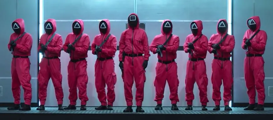 오징어 게임에서 게임 주최자와 일꾼들은 자신의 신분을 숨기기 위해 '가면'을 쓰고 있습니다.