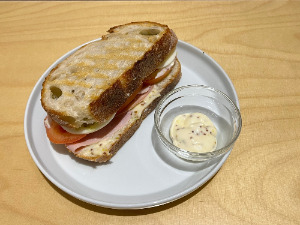 샌드위치는 일단 두 가지로 시작하기로 했다. 우리들의 야심작 그릴드치즈샌드위치와 포카치아 잠봉뵈르! 바게트를 내가 만들지 않는 이상 만족할 만한 곳을 찾지 못했고, 바게트의 빠삭한 식감을 싫어하는 사람이 많을 것 같아 포카치아로 결정했다. 플레이팅도 요래조래 해보고.