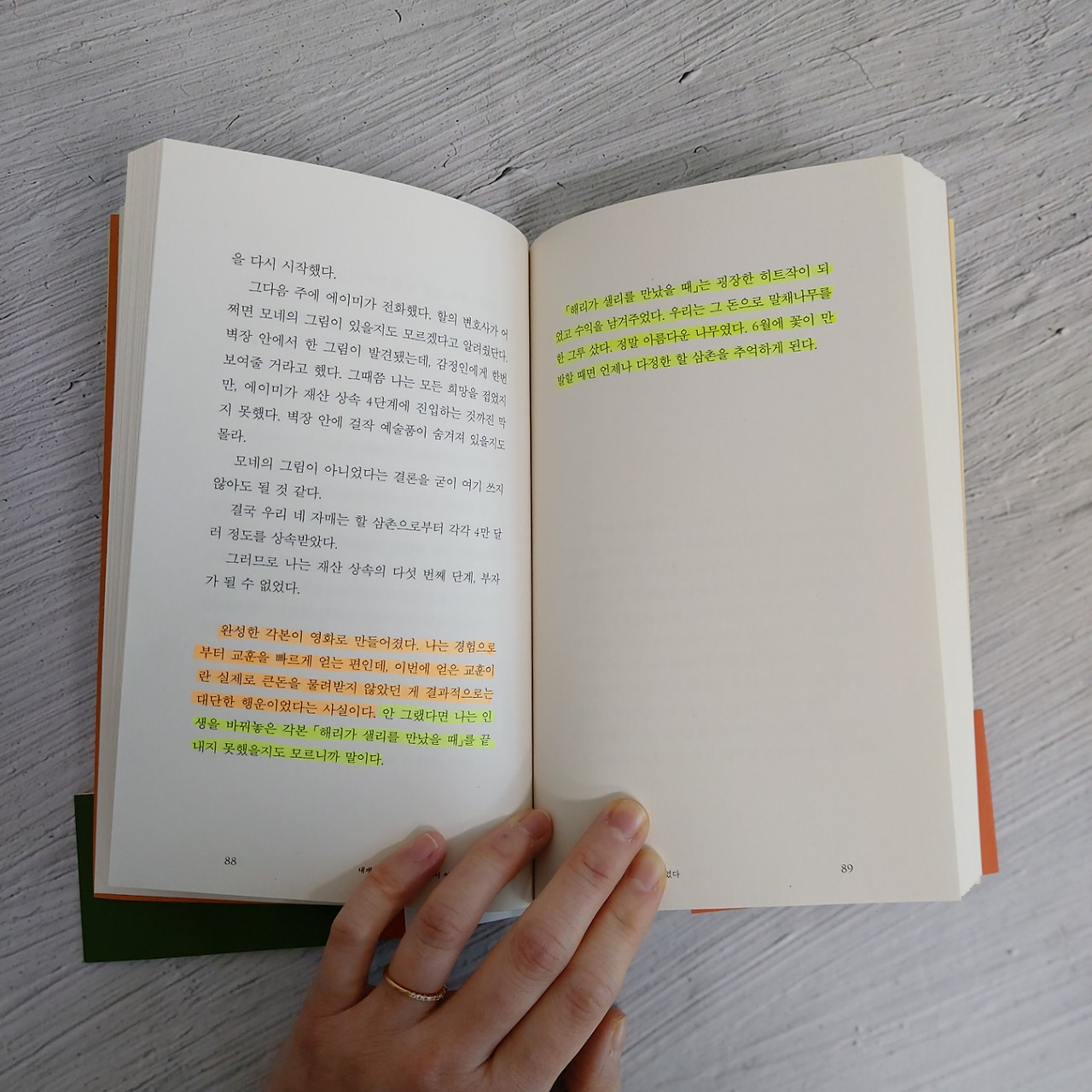 노라 에프런은 내가 좋아하는 영화 ‘해리가 샐리를 만났을 때’의 시나리오를 쓴 작가이기도 하다. 노라 에프런은 하마터면 이 시나리오를 완성하지 못할 뻔했음을 고백한다. 만약 그녀의 삼촌이 막대한 유산을 남겨 주었다면! 이러한 비하인드 스토리를 알게 되는 것도 이 책을 읽는 묘미 중 하나다.
