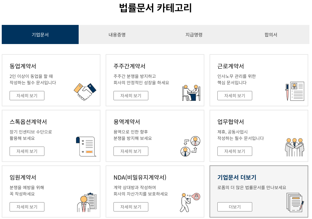 로폼을 통해 저렴한 비용으로 전문적인 법률문서를 쉽게 작성할 수 있으며, 다양한 법률문서 카테고리를 사용자가 직접 선택하고, 필요한 내용을 채워나갈 수 있다는 것이 장점이다.