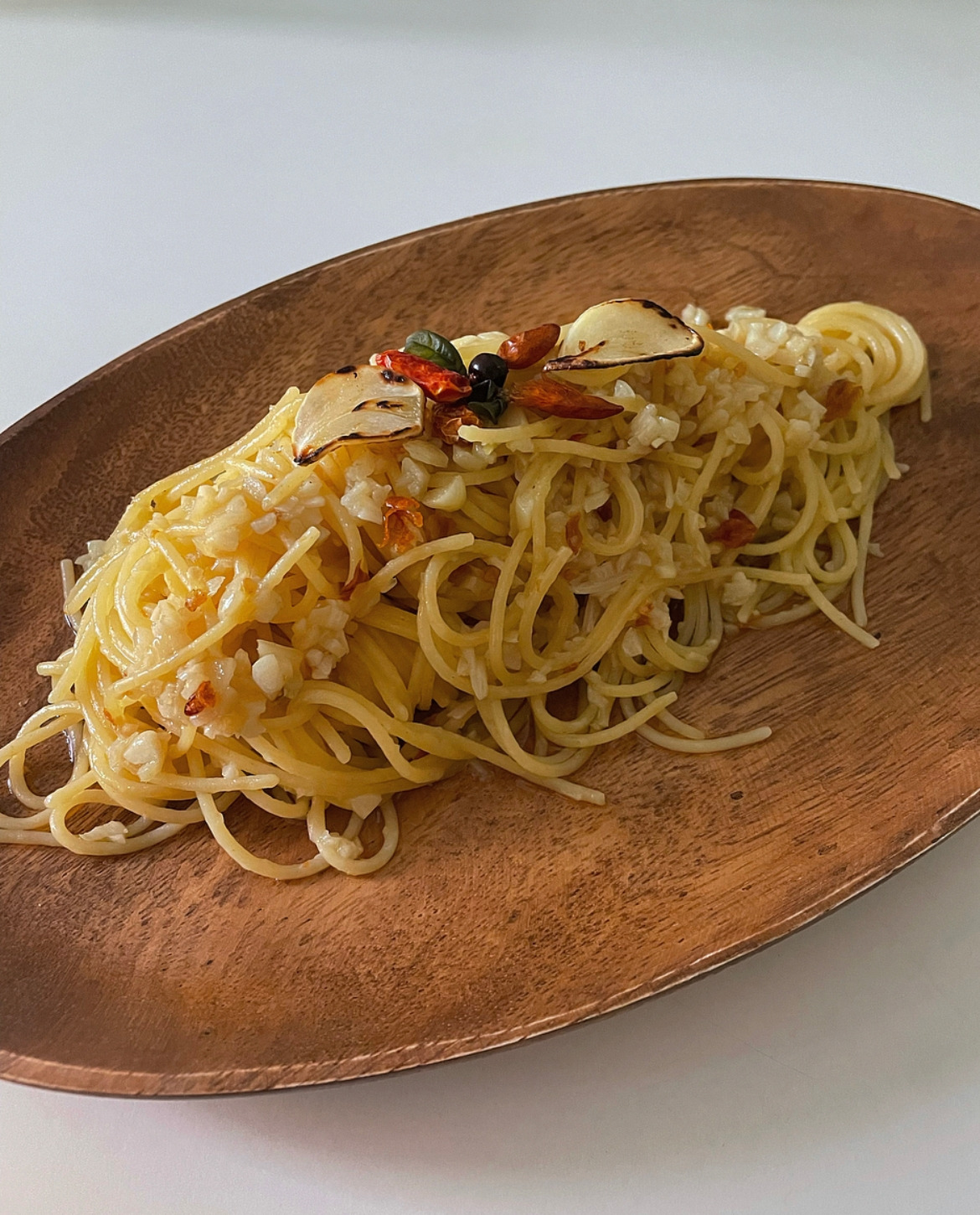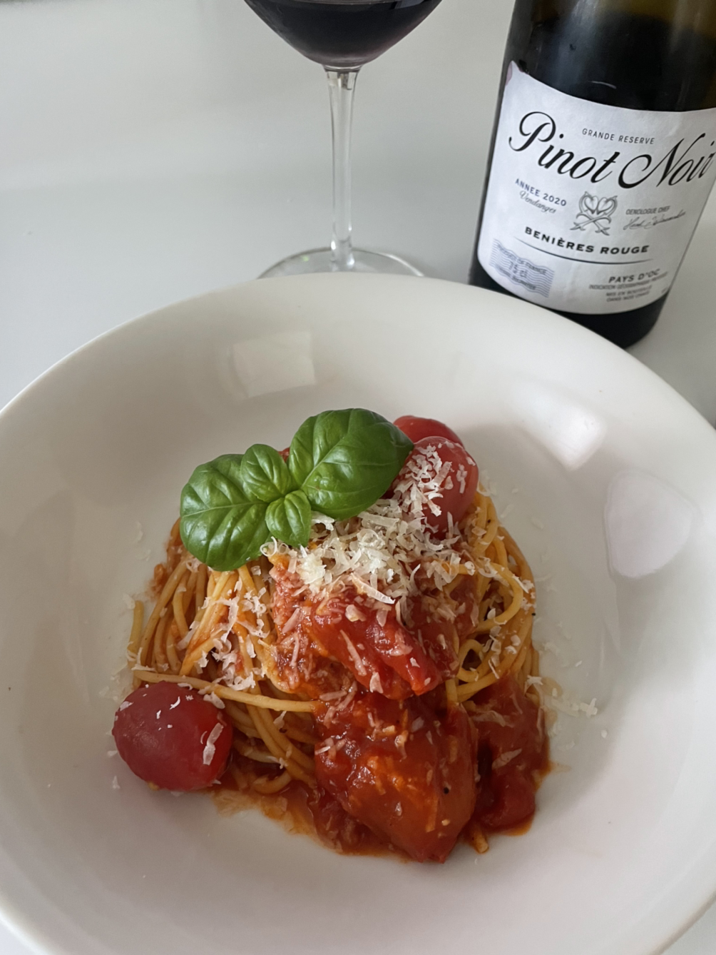 파스타를 젓가락으로 돌돌 말아 접시에 예쁘게 담아낸 뒤 파르메산 치즈를 그라인더에 솔솔솔 갈아주고 집에서 키우는 바질 잎을 따다 꽂아주면 제법 그럴듯한 레스토랑 비주얼이 나온다.