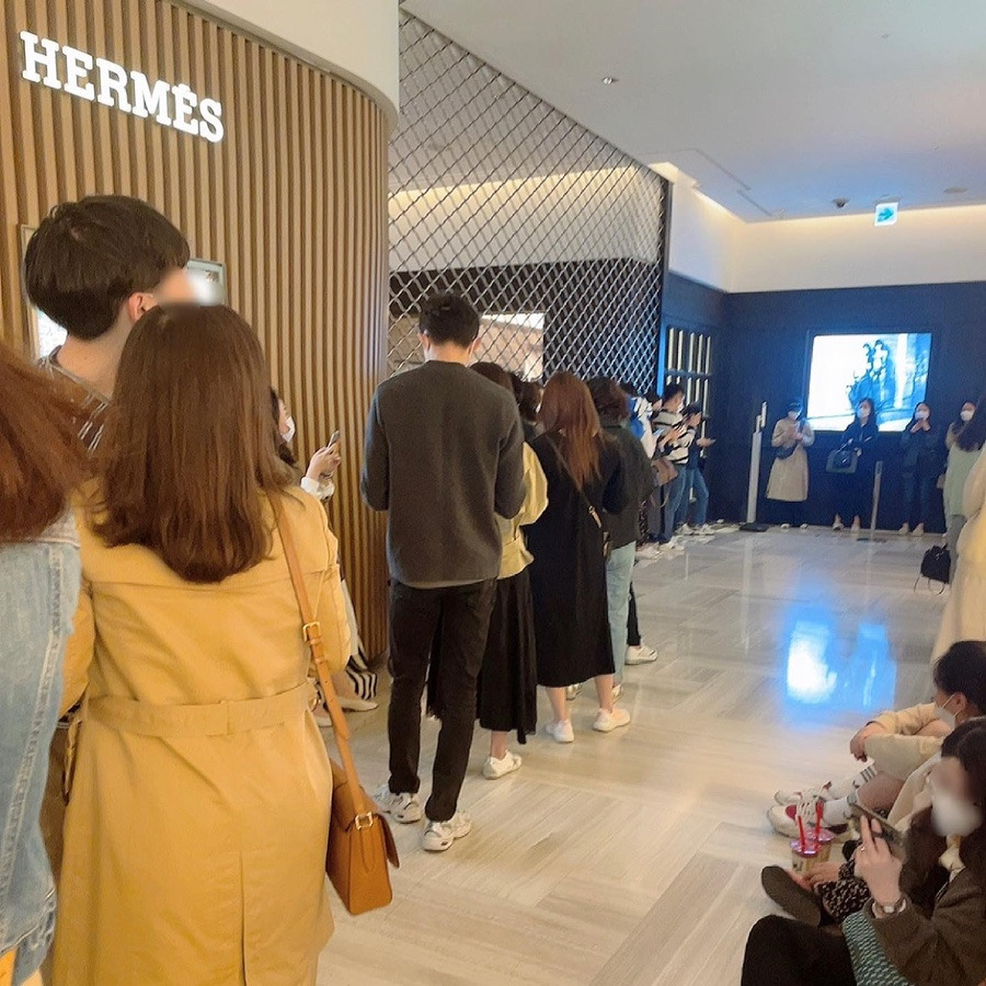 이미 사람들은 바글바글했고 돗자리를 깔고 앉아있는 사람도 있었다. 새벽 6시부터 와서 기다리고 있었다고 했다. 가방을 사기 위해 백화점에 돗자리를 챙겨 오는 발상도 놀라웠다.
