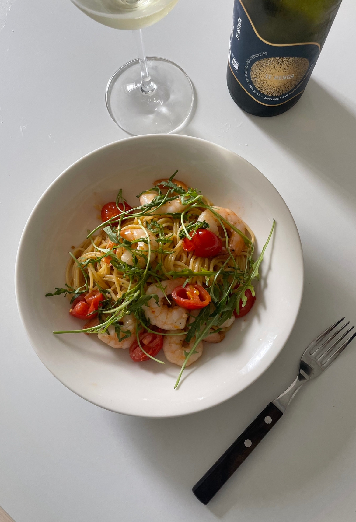그 외에도 부라타치즈와 루꼴라 토마토로 샐러드를 만들어 먹거나, 야채를 가득 넣어 볶음밥을 휘리릭 만들어 먹거나, 홀토마토로 에그인헬을 만들어 먹거나, 내가 직접 만든 새우오일로 새우 파스타를 만들어 먹었다.