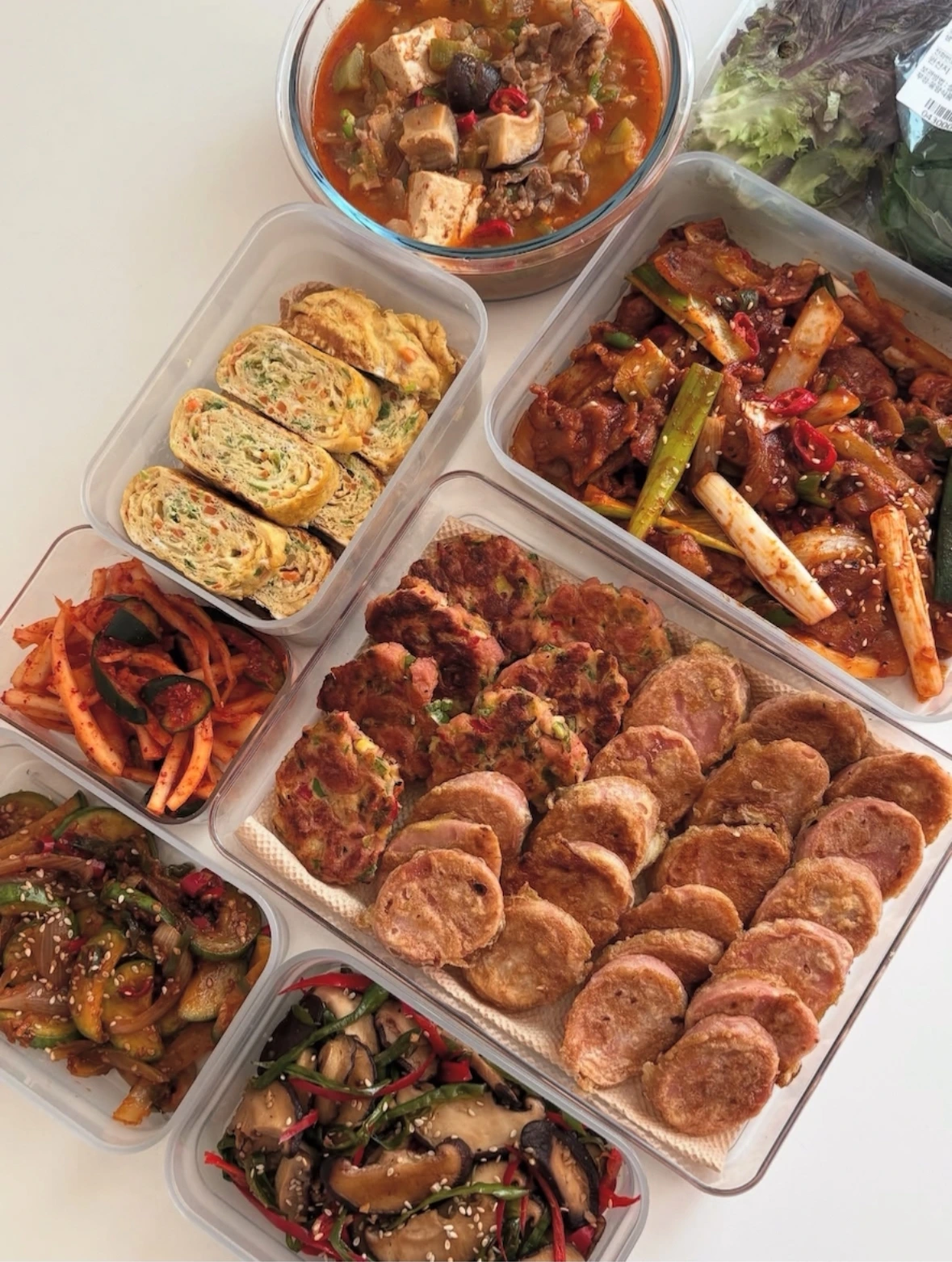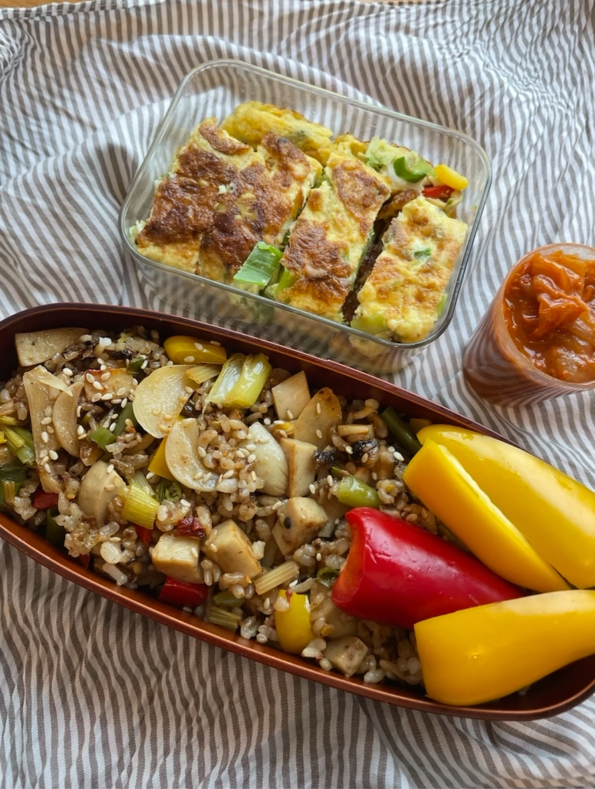 그 밖에도 <고기와 야채를 담뿍 넣어 졸인 두부조림>, <구운 대파를 곁들인 소고기 볶음>, <닭 가슴살 야채 오므라이스>, <캐러멜라이징 양파와 소고기가 들어간 일본식 카레>, <삼색 나물 비빔밥> 같은 영양 가득한 메뉴 위주로 도시락을 쌌다.
