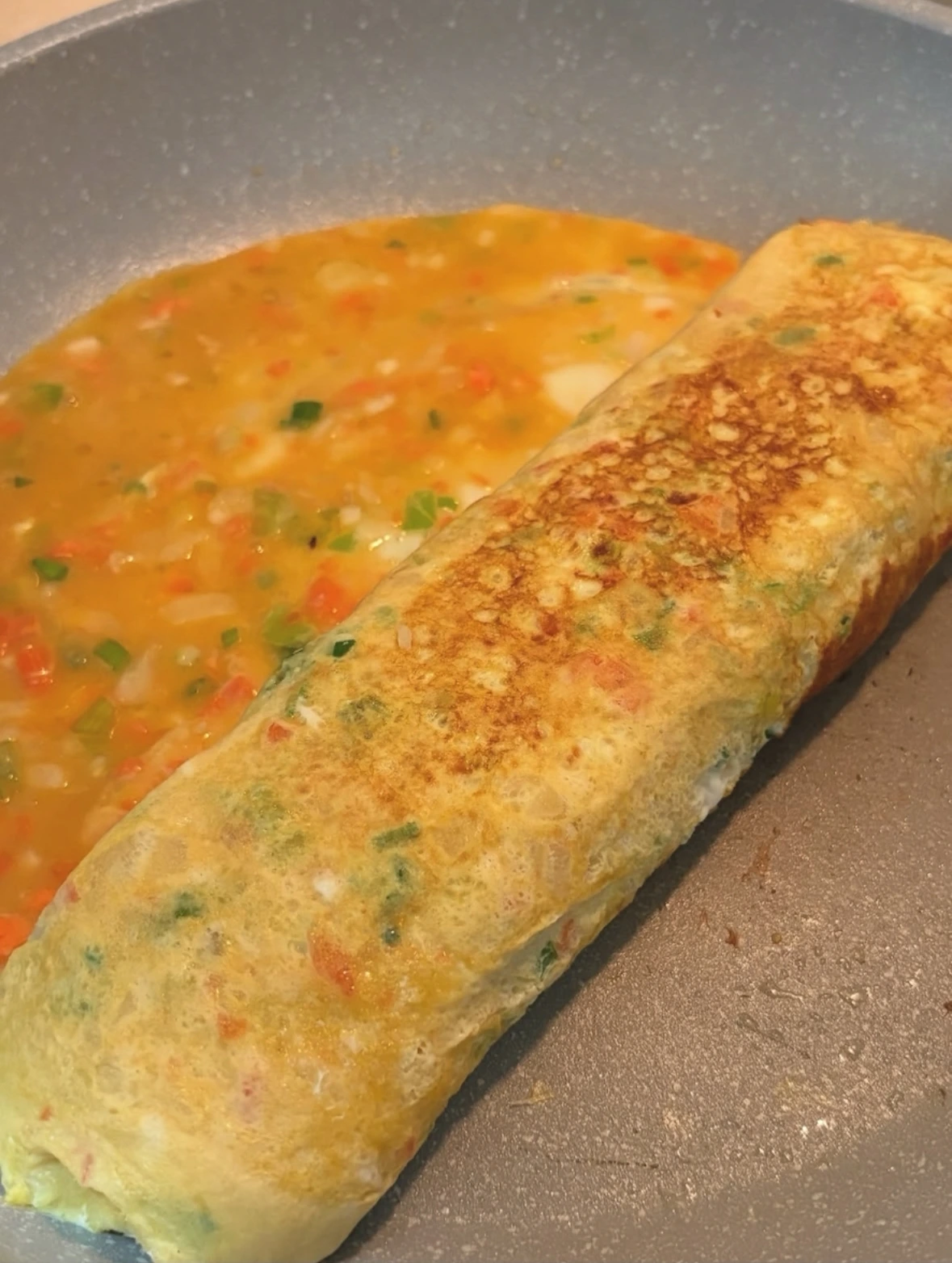 곁들일 반찬으로 갖은 야채를 다져 넣은 계란물을 프라이팬에 조금씩 부으면서 돌돌 말아낸다. 계란말이는 사각 팬이 없어도 예쁘게 만들 수 있는데, 약불 앞에서 느긋하게 기다릴 수 있는 여유만 있다면 망할 이유가 없다. 대부분 그새를 못 참고 뒤적거려 망하는 거다.
