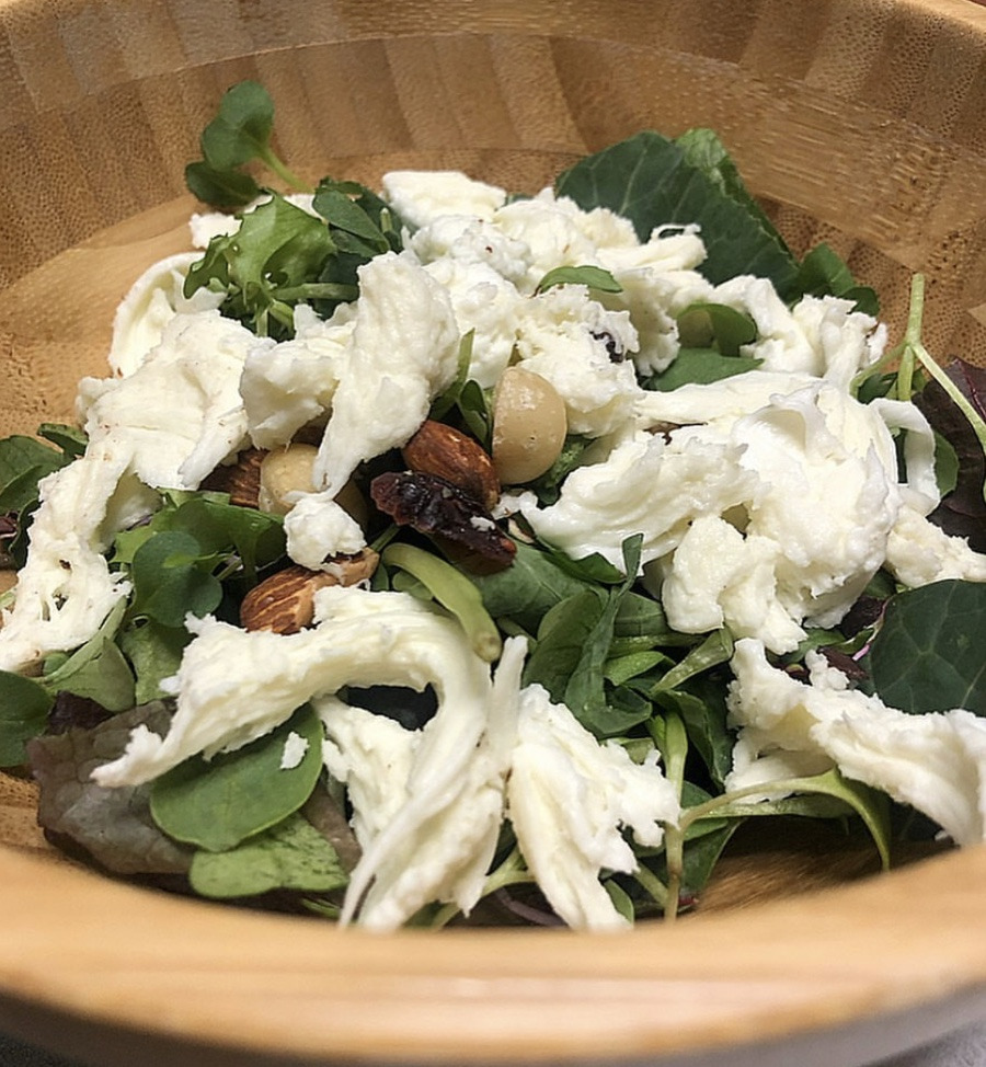 샐러드는 치즈와 견과류, 올리브를 올리고 이탈리안 드레싱을 곁들였는데 내가 만든 샐러드보다 더 고급스러웠다.