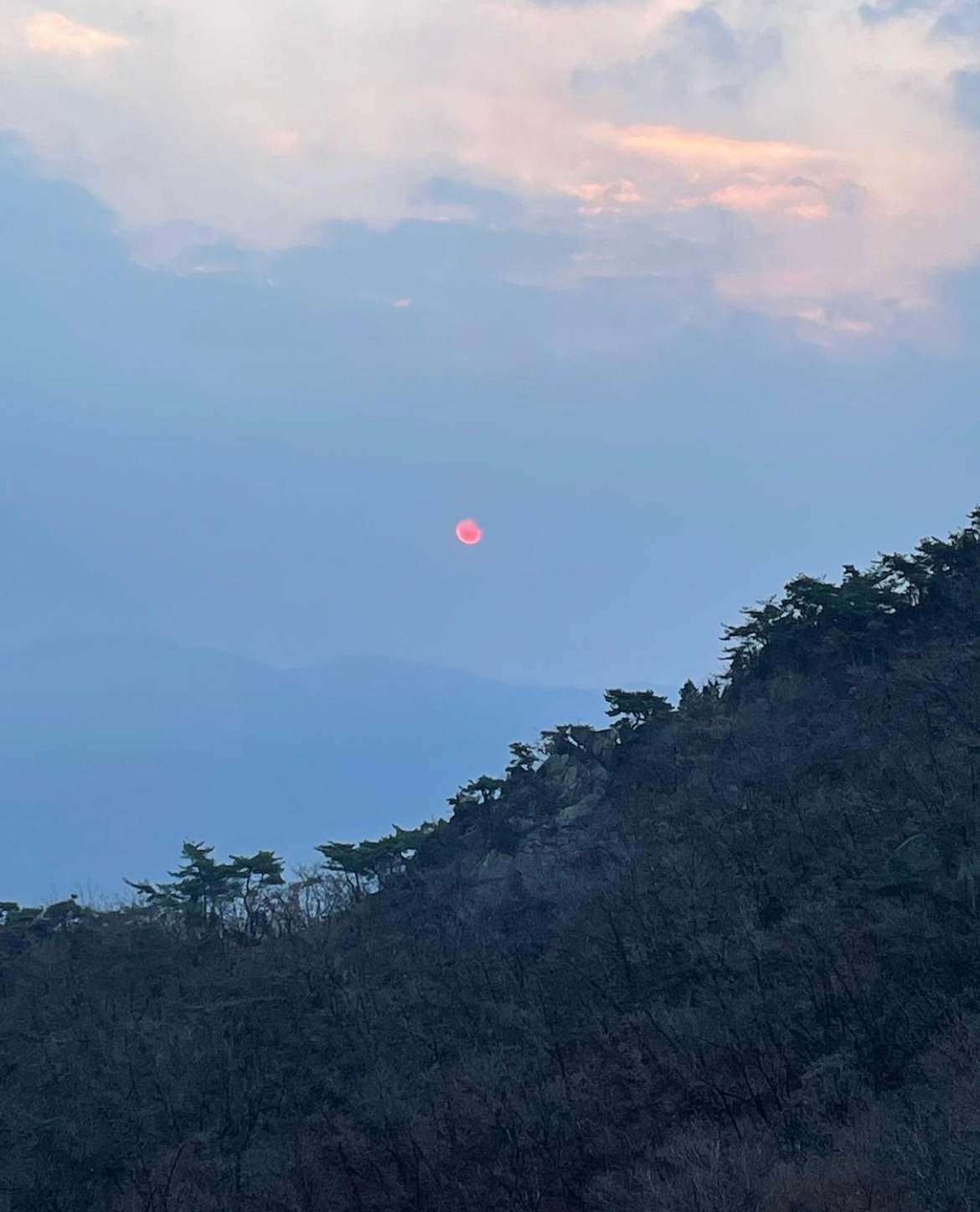 그렇게 한참을 이야기하는데 정신이 팔려 해가 떠오르는 타이밍을 못 보고 놓쳐버렸다. 이미 해는 하늘 높이 떠올라서 아쉬웠지만, 산등성이에서 갓 나온 따끈따끈한 태양은 새빨간 색깔을 띠고 있어서 그마저도 탄성을 자아냈다.