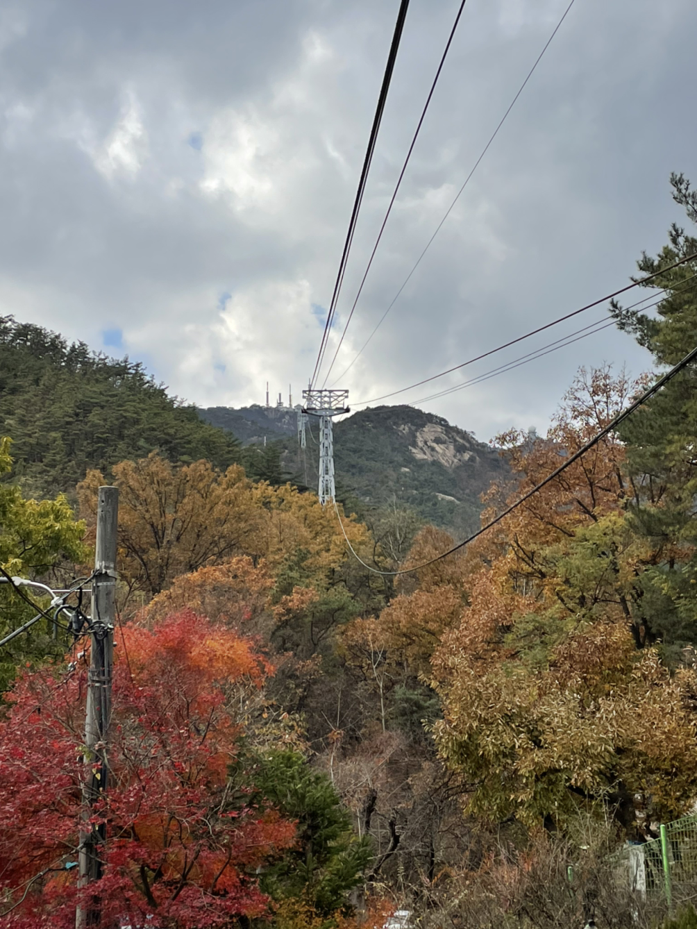 관악산 입구로 들어서니 울긋불긋하게 물든 화려한 단풍들이 바람에 흩날리는 풍경이 장관을 이루었다. 단풍 눈을 맞으며 맑은 계곡이 흐르는 산길을 따라 올라가니 듣던 데로 케이블카 타는 곳이 보였다.