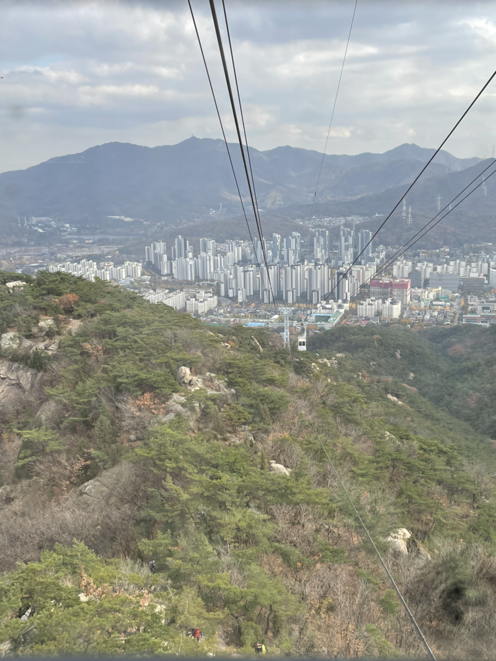 출발시간이 되자 케이블카는 천천히 움직이기 시작했고 발밑으로 펼쳐지는 가을 산의 절경에 홀려, 두려움도 잊은 채 넋 놓고 한참을 내려다보았다.