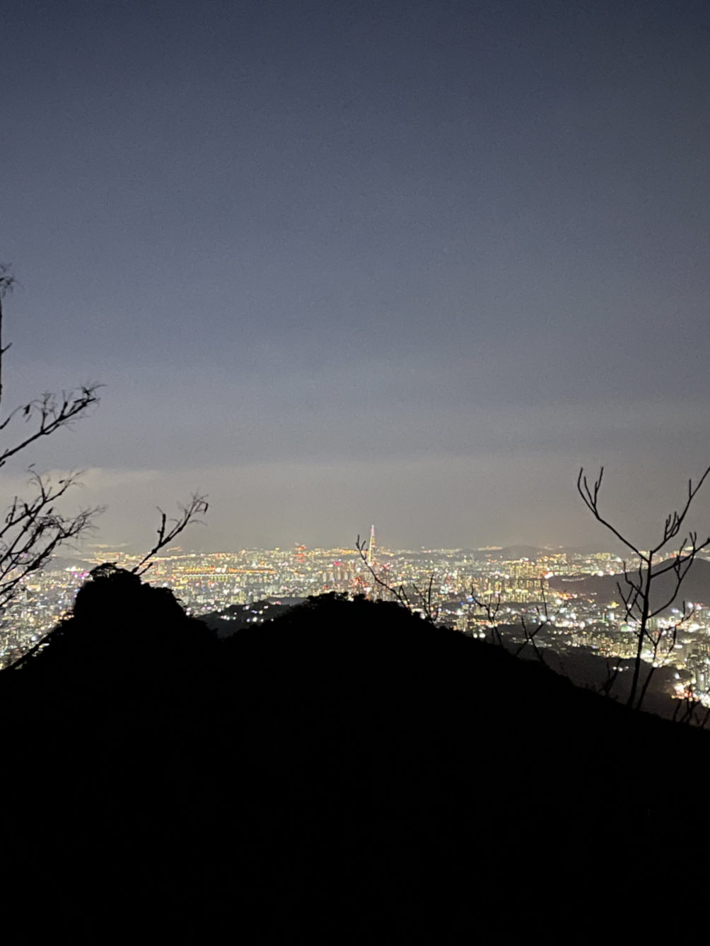 어느덧 해가 떨어지고 어두워지자 사찰에서 더 올라가야 볼 수 있는 연주대에 오르기로 했다. 핸드폰 플래시에 의지한 채, 어두운 산길을 따라 거친 숨을 몰아쉬며 한참을 올라가다 문득 산 아래를 내려다보았는데 감탄이 절로 나왔다.