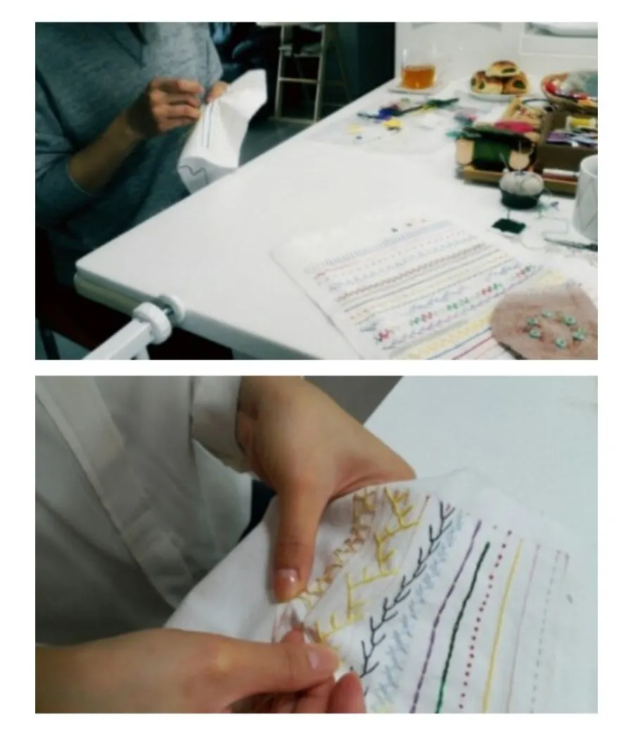 나는 프랑스자수를 공부할 때 5단계 정도로 나뉘어진 클래스를 들었고 수업을 듣는 동안 기초자수반 정도의 커리큘럼을 내 나름대로 짜두었었다. 그땐 말 그대로 취미생활이어서 공방을 창업하려는 목적으로 커리큘럼을 짰던 던 아니었고, 선생님 수업을 들으며 갸웃했던 부분들을 수정하다보니 나온 결과물이었다. 가령 기초에서 배우기에 어려운 기법, 고급에서 배우기는 너무 수월한 기법 등을 체크해두었다가 순서 조정해보았는데 꽤 괜찮은 기초스티치 커리큘럼이 나온 것이이다.
