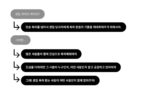 가장 알맞은 생일 축하 목적을 찾기 위한 생각의 프로세스