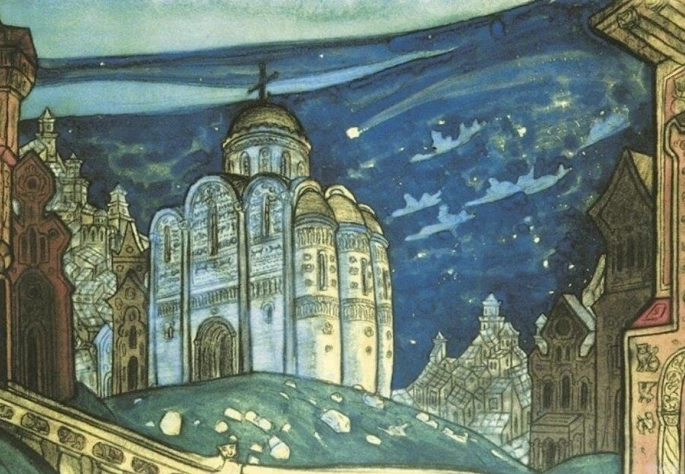 세르게이 디아길례프는 지금 러시아에 있는 대부분의 극장을 열었던 사람으로, 지금도 그를 기리는 디아길례브스키예 season과 같은 행사도 있다 한다. 레리흐는 그의 절친한 친구로, 그와 함께 무대장치 디자인을 많이 했다고 한다. 더욱이 루스와 고대문화를 좋아하는 레리흐다 보니, 이 역시 즐거운 작업이었을 테다.