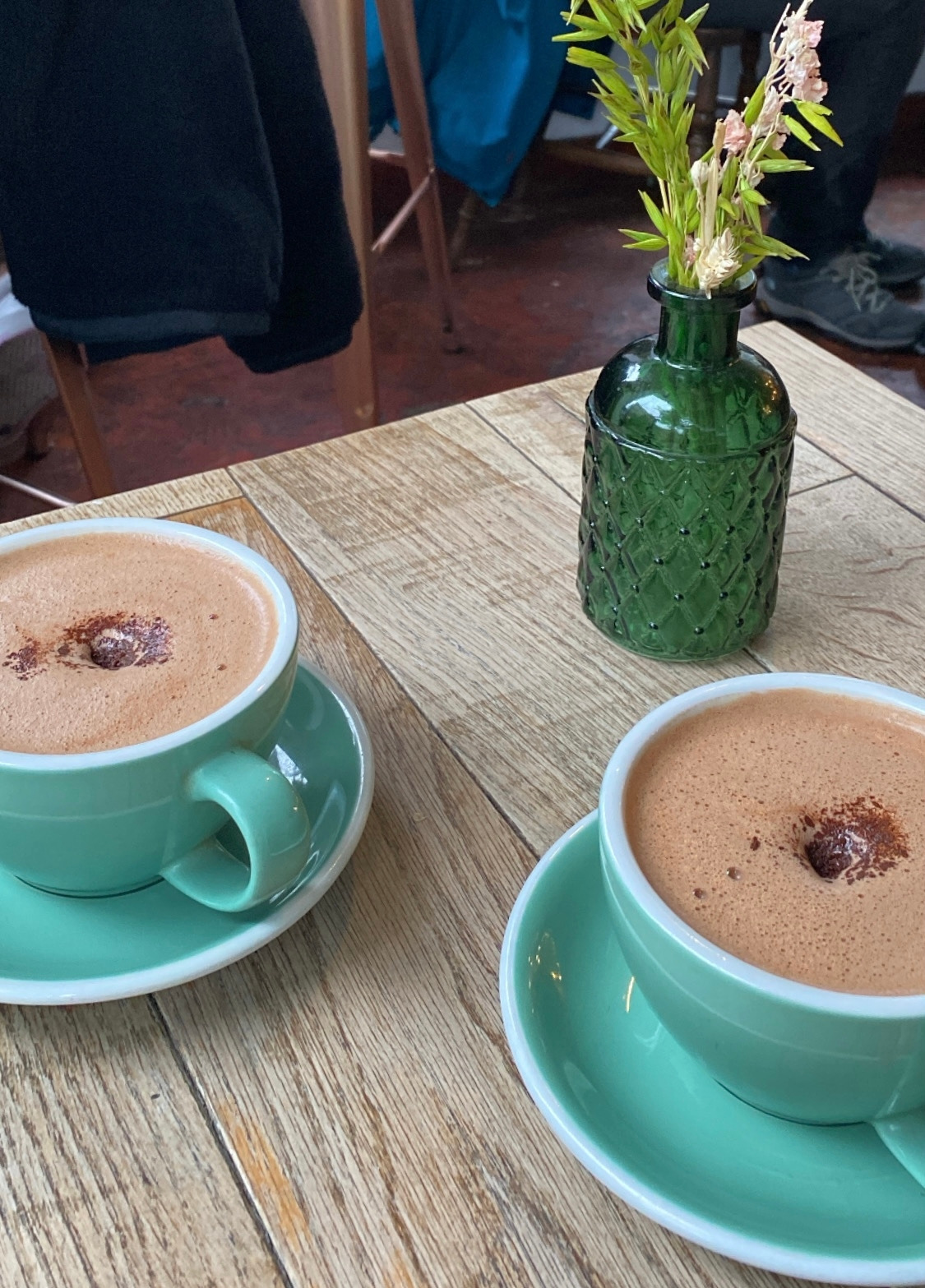 비가 오니 확연히 추워진 날씨에 우린 핫초코를 시켜 먹었다. 달달한 뜨듯함이 몸속에 퍼지자 비 때문에 으슬으슬했던 몸이 한결 따듯해졌다.