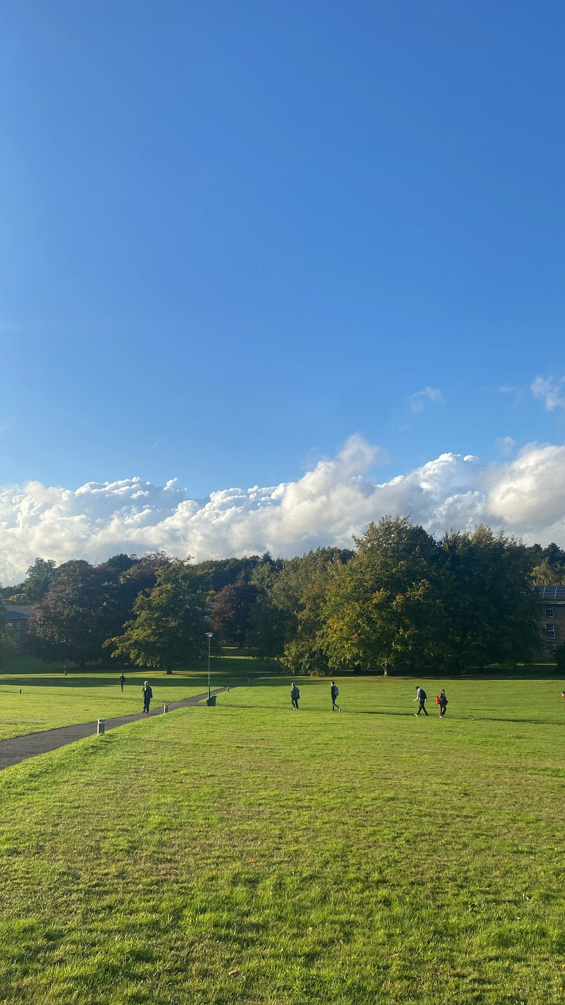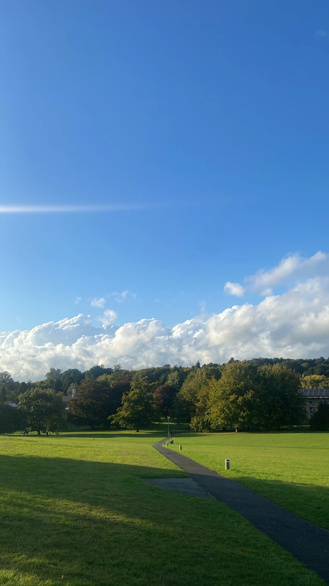 그리고 노팅엄 대학교의 명물 'The downs'에 도착했다. '광활하다'는 말이 절로 나올 정도로 큰 푸른 들판(?)이 펼쳐져 있었다. 끝없이 펼쳐져있는 하늘색과 초록색이 막혀있던 속을 뻥 뚫어주는 기분이 들었다.