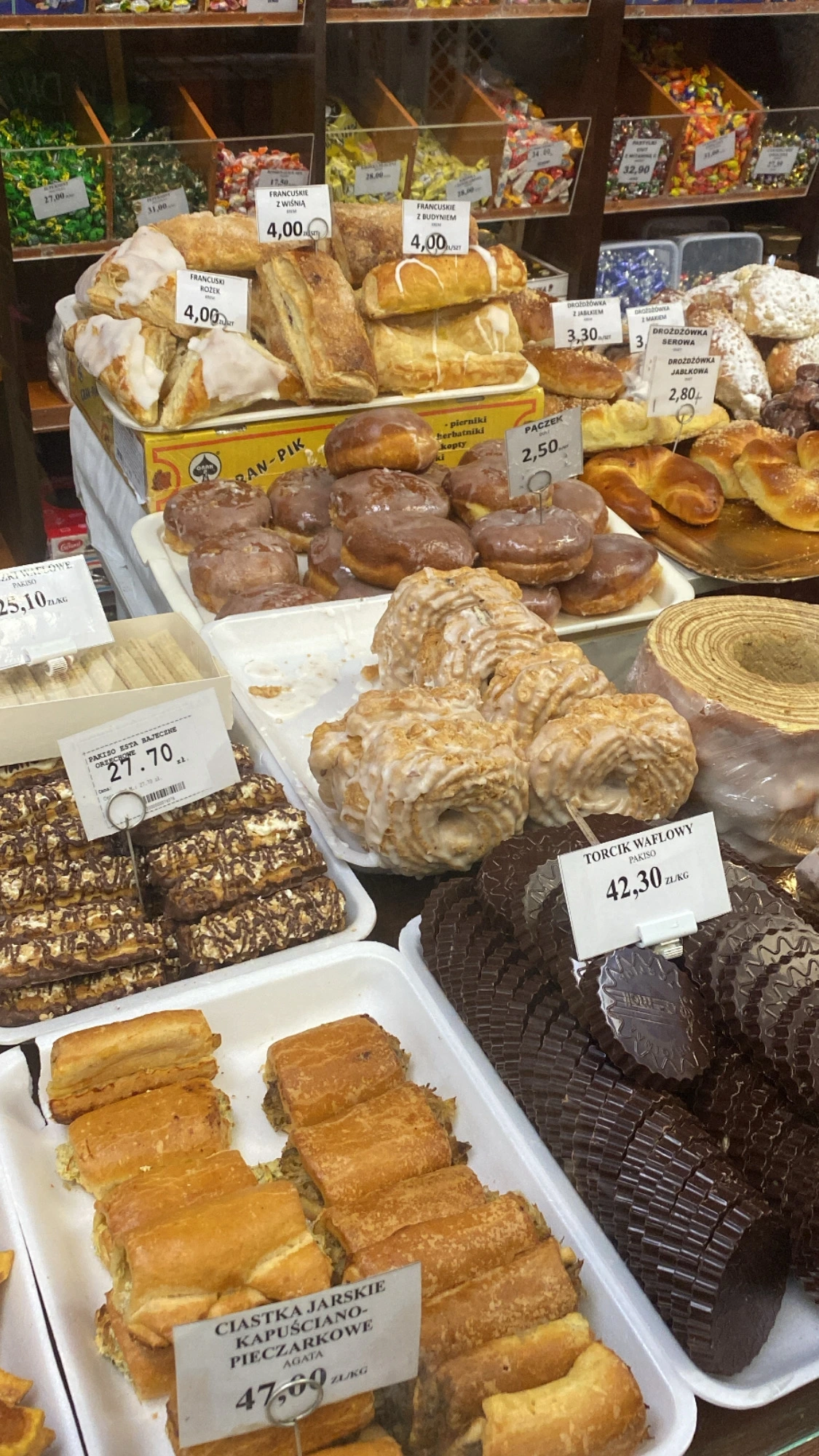 결국 우린 폴란드 전통 도넛 퐁츠키(내 폴란드 최애 음식이다) 하나를 사서 사이좋게 나눠 먹고 본격적으로 장을 보기 시작했다.