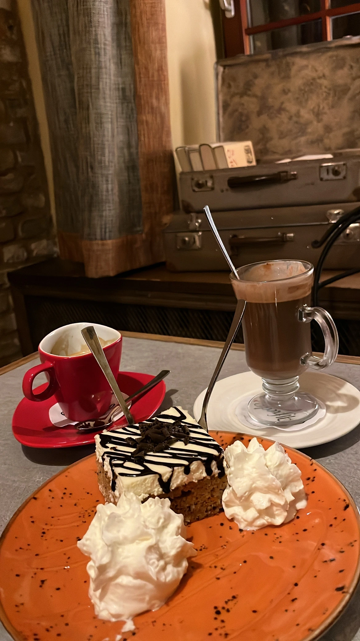체리 와인을 먹고 나오니 한 카페에 사람들이 바글바글한 게 보였다. 우린 여긴 분명 맛집일 거라는 촉이 왔고 바로 들어갔다. 핫쵸코와 커피, 당근 케이크를 시켰는데 정말 이 당근 케이크 당황스러울 정도로 맛있었다.