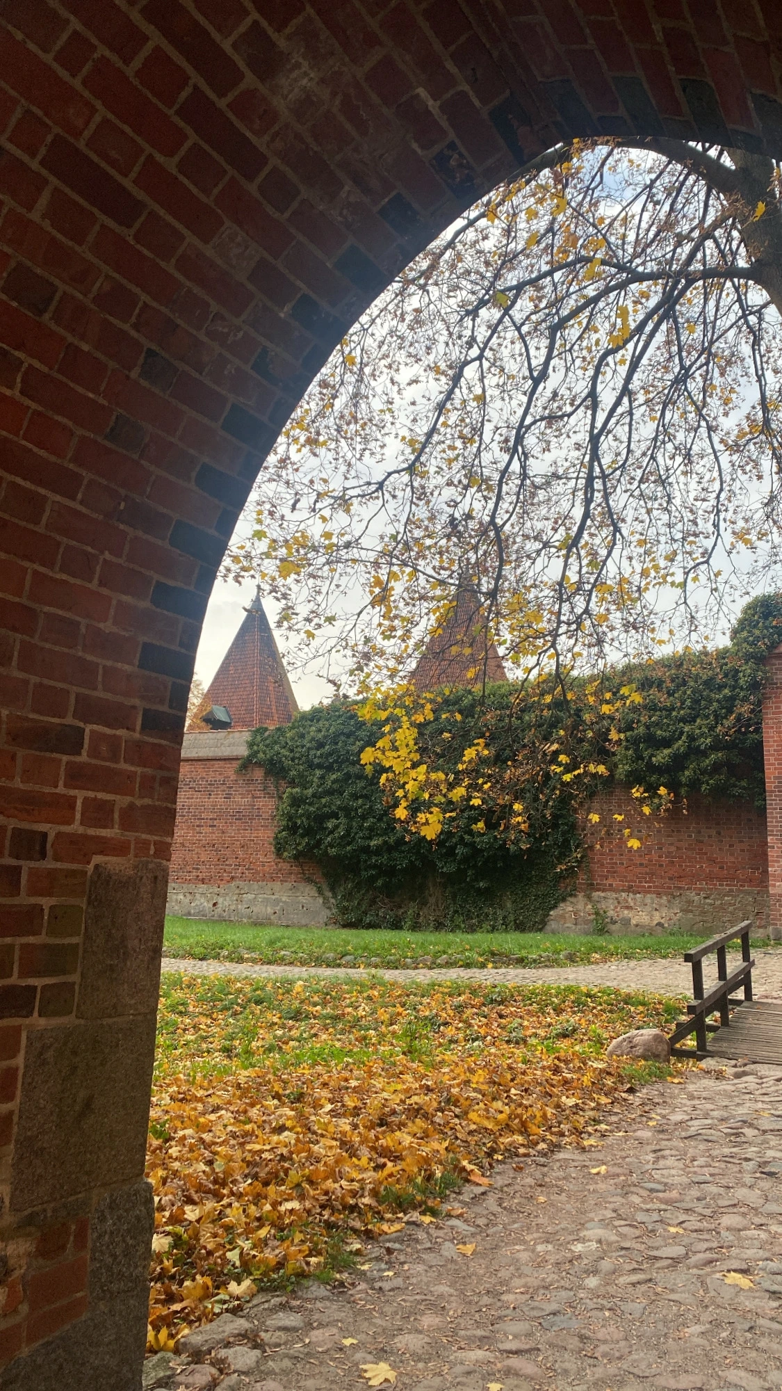 성 외부를 쭉 둘러보고 난 후 우린 성 내부로 향했다. 나무들의 노란 이파리와 빨간 벽돌이 참 잘 어울렸다.