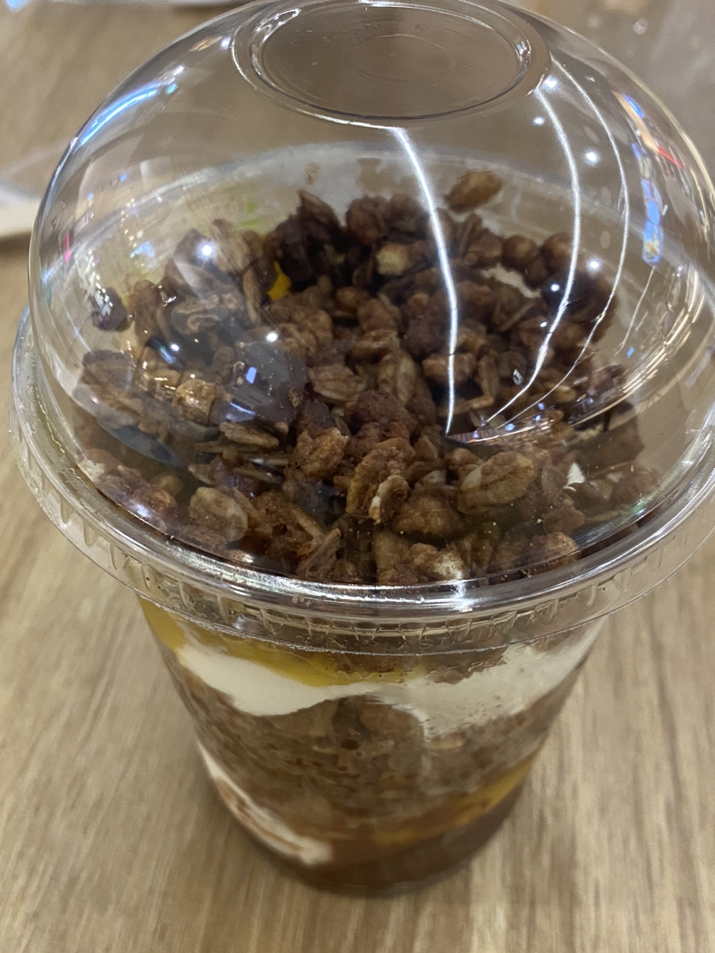 쇼핑하다 배가 고파서 친구와 샐러드를 사 먹었다. 그리고 디저트로 이렇게 생긴 요거트도 사 먹었는데 꾸덕한 요거트와 망고, 초코무스가 절묘하게 어울린 완벽한 요거트였다.