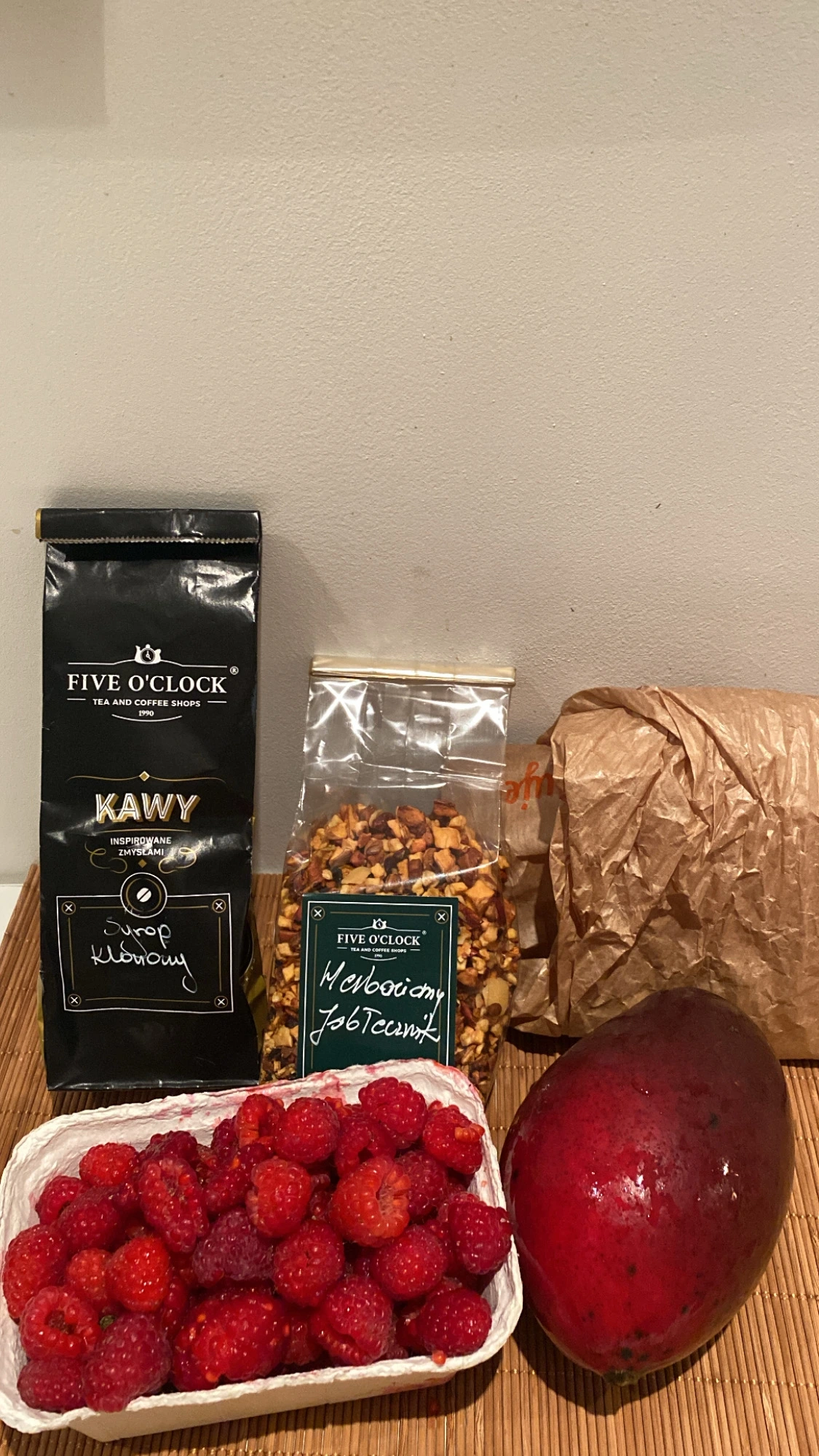 장을 다 보고 집으로 향하는 길, 우린 과일가게에서 라즈베리와 애플망고를 샀다.