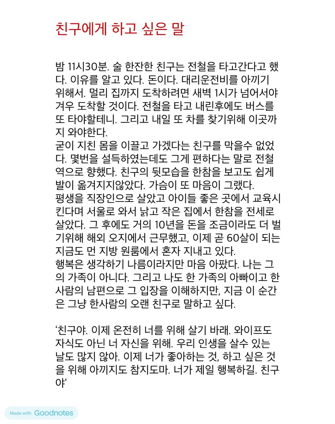 친구에게 하고 싶은 말