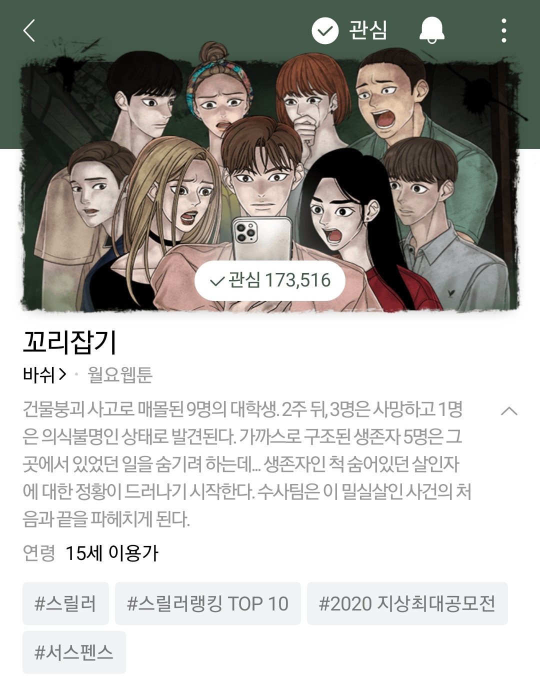 오늘의 추천작은 네이버 2020지상최대공모적 대상작인 '꼬리잡기'다.