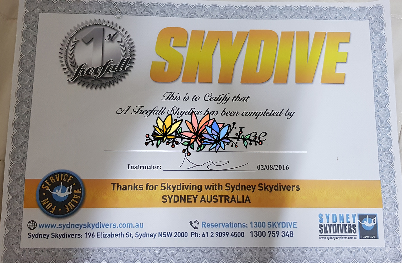 이후 2016년에는 호주 비행기 티켓을 결제하고 스카이다이빙 예약을 했다.