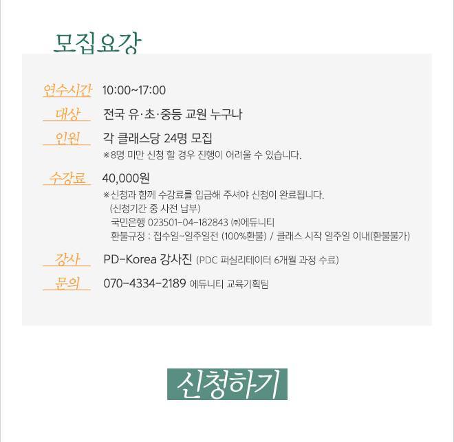 아래 연수 내용은 연수 기획자의 의도나 기획과는 다를 수 있음을 알려드립니다.