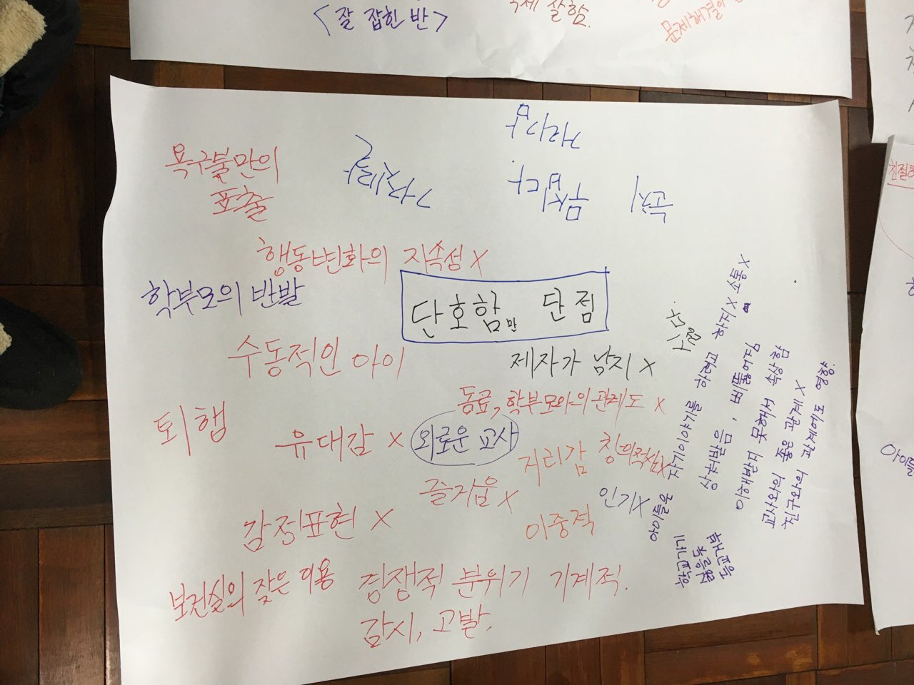 펼쳐놓고 어떤 선생님인지 어떤 선생님이 되고 싶은지 친절함과 단호함까지 움직여보고, 어떤 생각을 가지는지 선생님들끼리 대화를 했다.