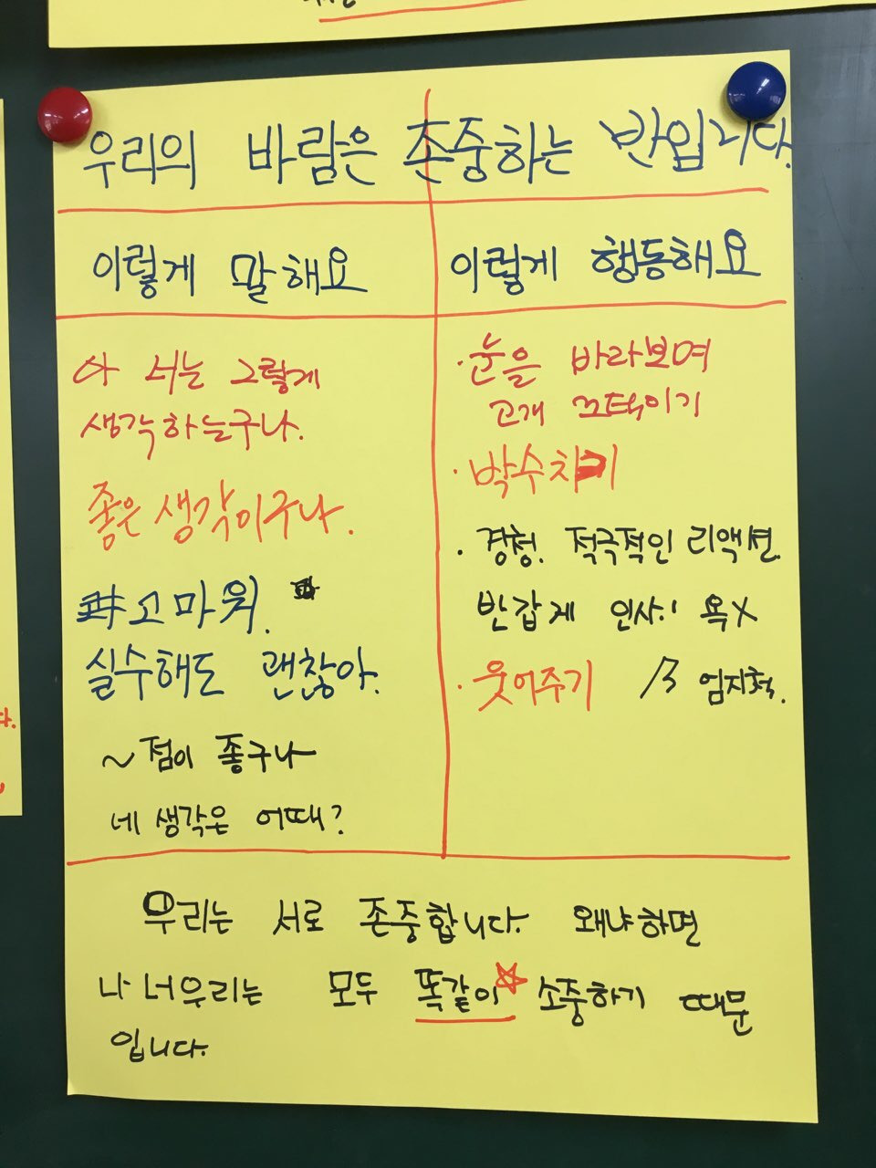 여러분들이 만든 약속이고, 여러분들이 지키기로 약속한 거예요 싸인도 했죠? 이렇게 해야 한다.