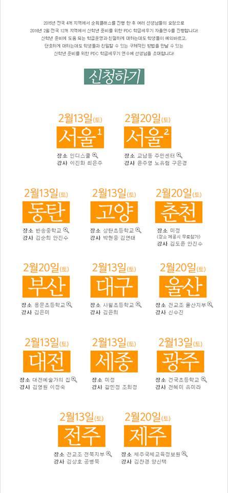 우연히 페이스북 친구인 나승빈 선생님의 PDC연수블로그 포스팅을 보고 어? 괜찮은데? 하는 생각을 했고, 책과 블로그 포스팅으로는 진행 과정이 잘 그려지지 않기에 PDC 연수에 참여해보고 싶다는 생각을 했다.