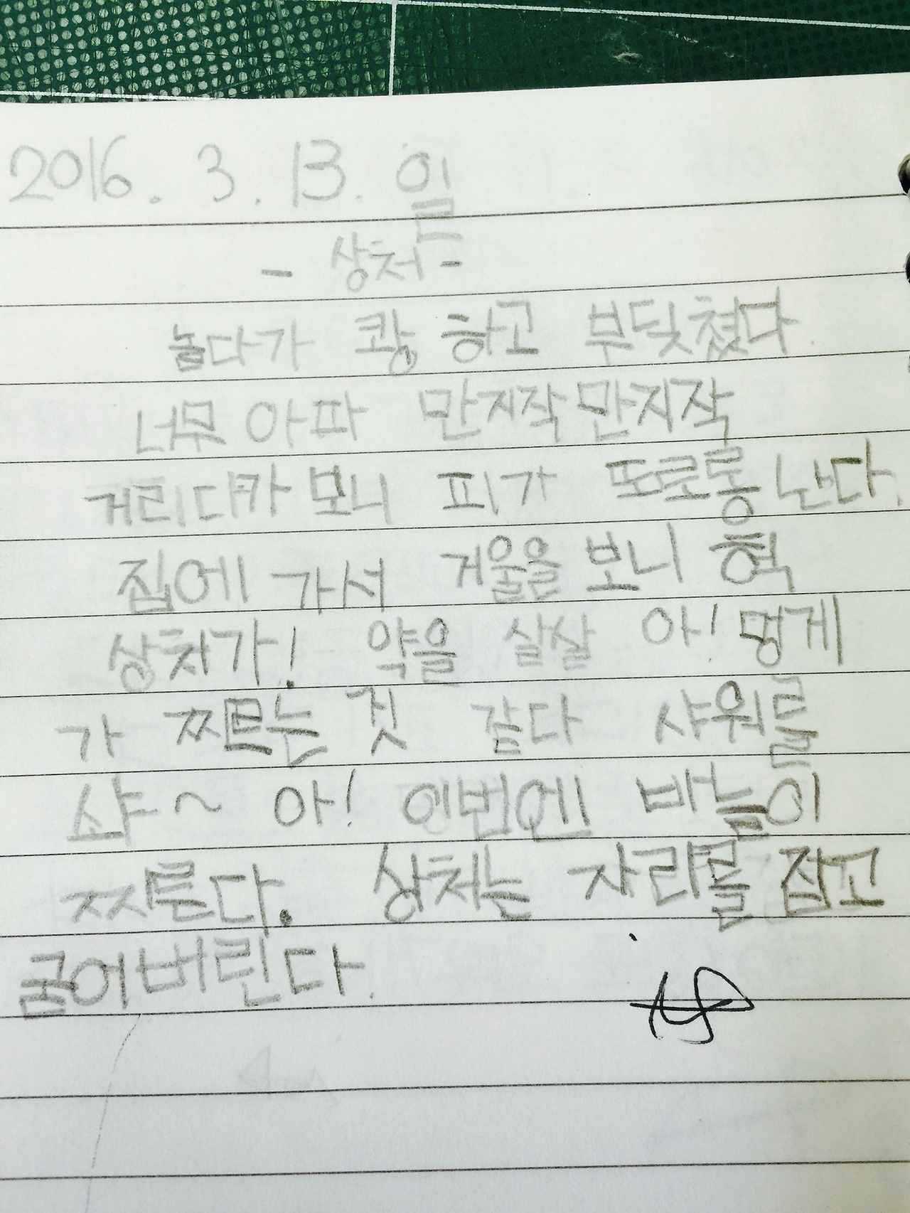 약을 살살 바르는데 아! 성게가 찌르는 것 같다.