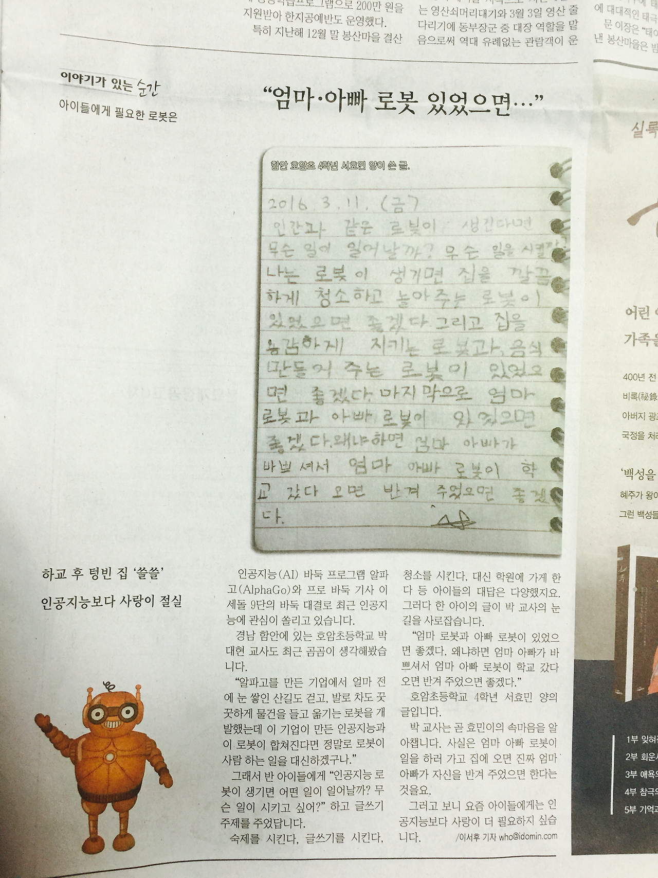경남 도민일보에 신문에 우리 반 학생이 쓴 글똥 기사가 났다.